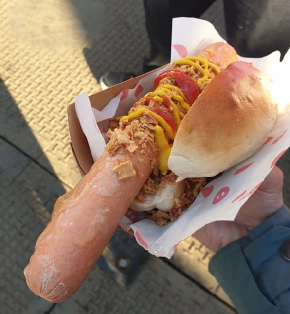 Just look at it. Covered in gelatinous – supposedly vegetarian but who knows – goop, freezing cold and served in a miniature bun. 8 of my Great British pounds spent just to go immediately in the trash. Vile.