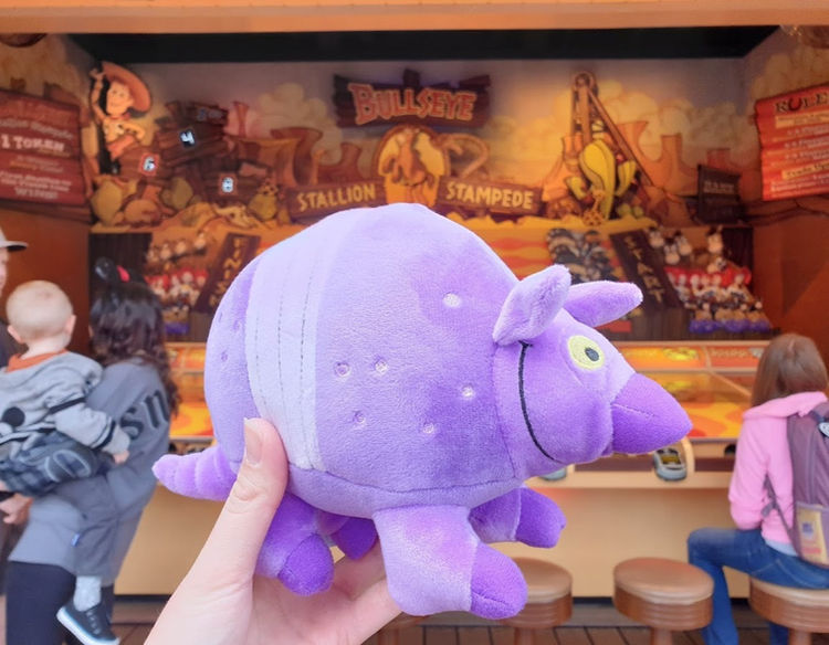 Flash forward to 2022. I’m at Disney’s California Adventure riding the west coast Midway Mania for the first time and there he is, my little armadillo in the prize line-up, ready and waiting to be won (alas, I did not win him!)
