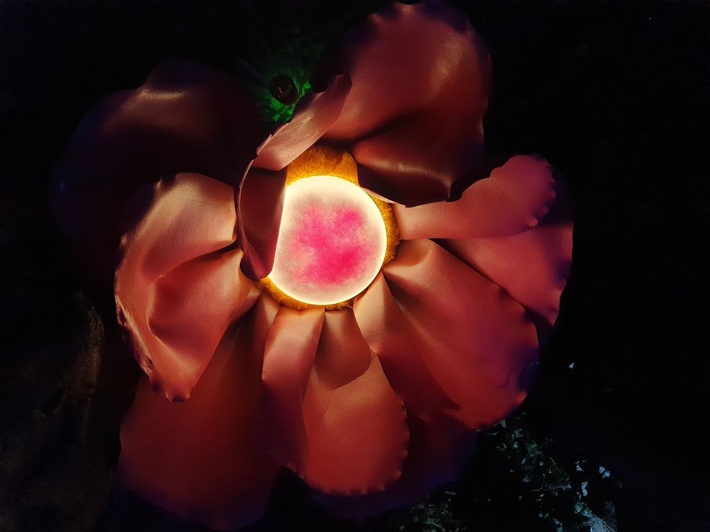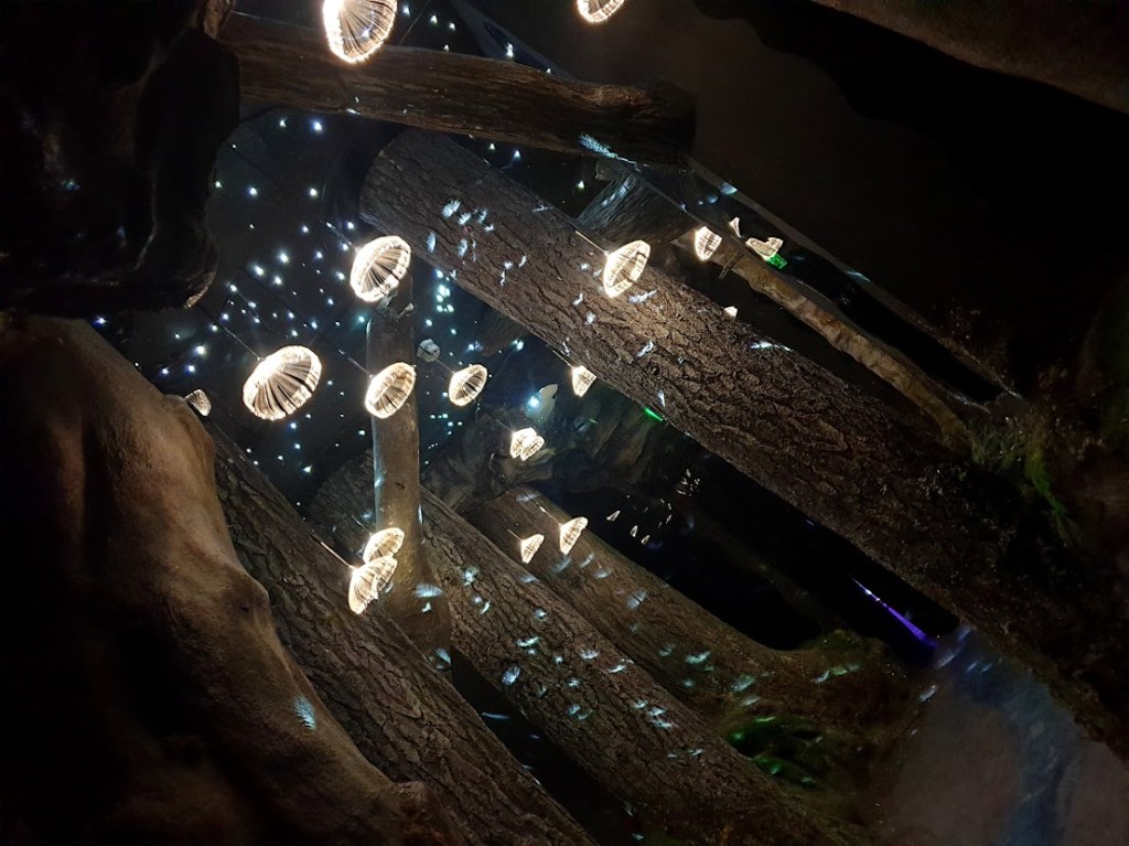 Another favourite was the Mycelium Room, where glowing root-like mycelia surround you, supporting a group of touch-responsive (look out for the little symbols encouraging interaction throughout!) mushrooms in the centre of the room. This was another space that I spent quite a while in – watching the lights dance around the room was really mesmerising!