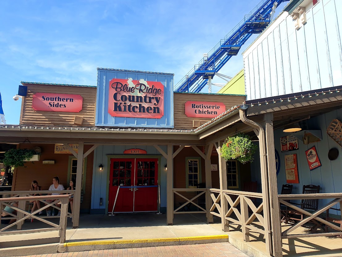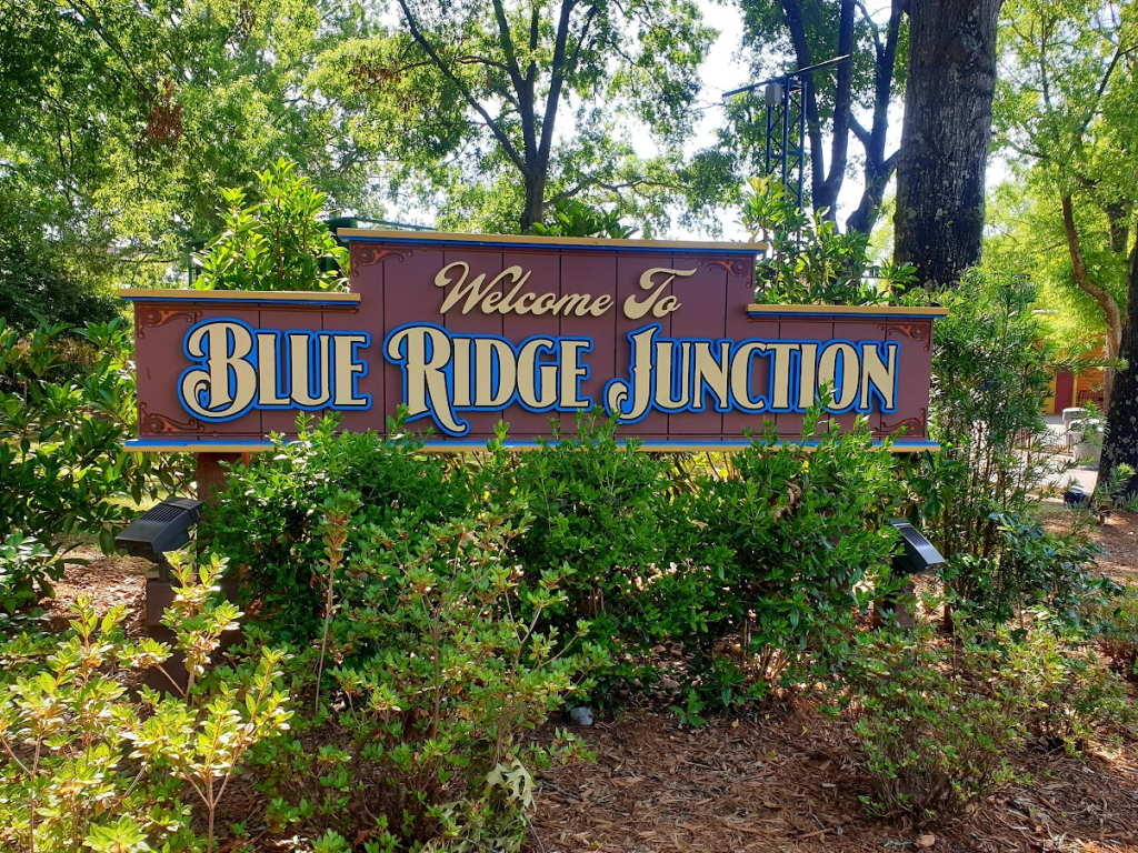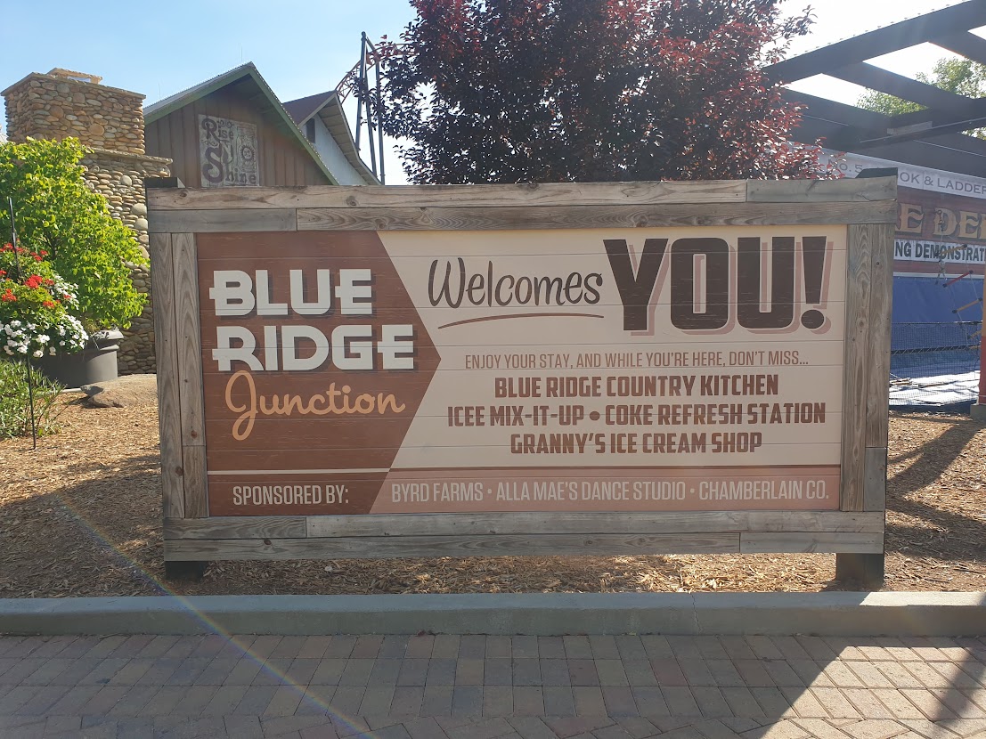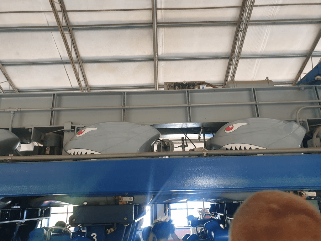 Next up, it was time to leave the beauty of Blue Ridge Junction and walk on up into the somewhat less scenic Crossroads area. Presumably named because the park didn’t really know what to do once Afterburn was no longer themed to Top Gun. Thankfully, even with the light military theming, this coaster was the big surprise of the day! How had I never heard of Afterburn before?! This is an absolute beast of a B&M invert, flying through a massive vertical loop, ditches, tunnels and zero-g rolls with crazy intensity. It’s absolutely up there with the best of the B&M inverts for me! (Also, I loved the details on the tops of the trains. Shark train!)