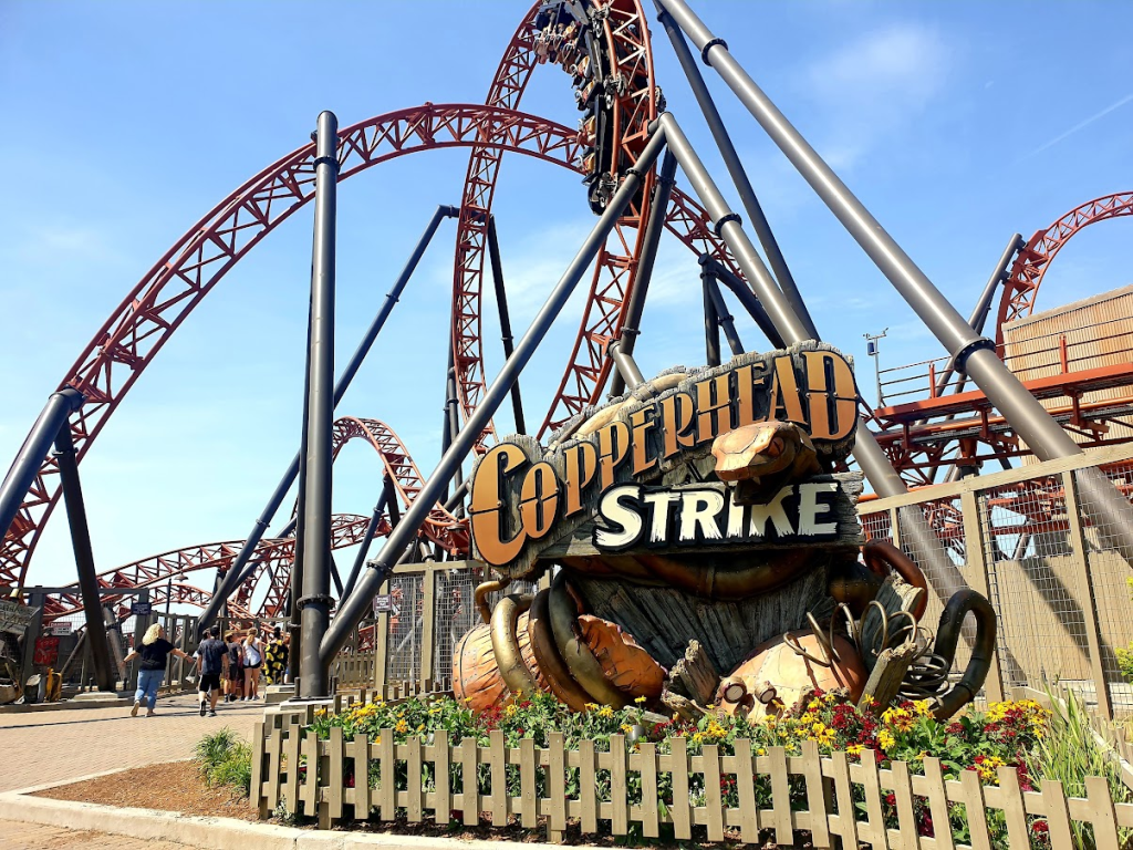 I may have mentioned once or twice how much I adore hangtime? Well, Copperhead Strike was stacked with the stuff. Absolutely stacked. From the moment the ride began, I knew I was in for a good time. For those that have ridden Ride to Happiness, the beginning of Copperhead will feel pretty familiar, with an instant jojo roll as you leave the station. From there, you coast into a barn which is fantastically themed to a secret moonshine factory with screens providing the story elements. Honestly, I didn’t actually look at these too much because there was also a model chicken in a box which puffed feathers everywhere as you were about to launch and I loved it too much to look anywhere else. So about that launch… oh Mack. You tried. If you’ve done a Mack launch before (e.g. Icon) you know what to expect. They aren’t snappy, and this is no exception. But regardless, you launch directly into a vertical loop and take it slooooooowwwww. You’re held upside down in that loop for what feels like forever, before exiting straight onto an airtime hill with some great ejector. That about sums up what you can expect from this ride. If you don’t think of this as a launch coaster, but rather just a gentle-paced airtime and hangtime machine, I hope you’ll have just as much of a great time as I did. My only issue with the ride was that those lapbars get tight through the ride time. When I took my fan in my pocket, by the time I reached the station I was in agony from how hard it was being pressed into my leg. But it was all worthwhile for a beauty of a ride that sits firmly in my top ten.