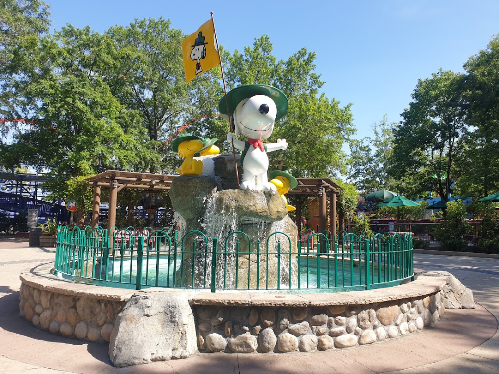 Another Cedar Fair staple to make an appearance in this park was Camp Snoopy, which once again was shade-filled, gorgeously landscaped and packed with places to kick back and relax. Sadly, with Woodstock Express down and Wilderness Run accepting no solo adults (even with a completely empty station) we didn’t actually experience any of the attractions here, apart from its true E-ticket, the numerous shaded benches.