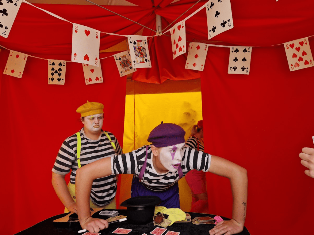 In the tents surrounding the stage, there were yet more entertainment offerings being provided by the same incredible team, with both a card trick booth and a tarot card tent available (for free)! I started at the card trick booth and watched the mime silently guess our cards correctly 5 times in a row, guessing silently through either charade or pointing at cards around the room. I love this stuff man. I have no idea how magic tricks work and honestly, I’m perfectly happy to keep things that way – they always bring me so much joy!