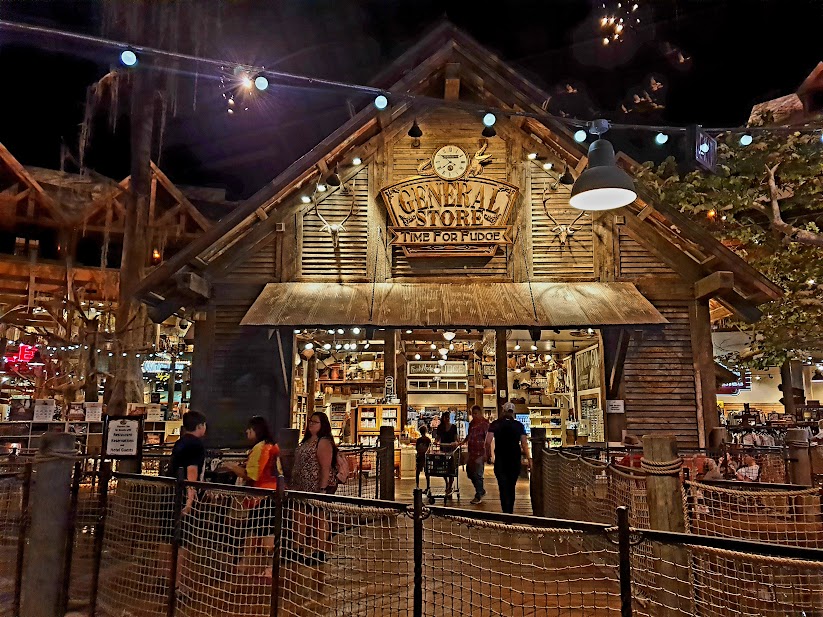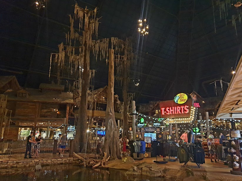 Was I really in a shop? Because frankly, I was pretty certain I was in a swamp, somewhere down in Louisiana perhaps. At the heart of the pyramid was a bayou, surrounded by life-size trees and ‘individual’ shops. To cross the bayou there were a series of bridges and boardwalks, taking you between the different outlets. As well as various ‘shops’ – they were all one shop really with one large checkout area – stocking things such as homeware, clothing and candy, there was a large recreation area in the furthest rear corner of the pyramid with food, drink and bowling!