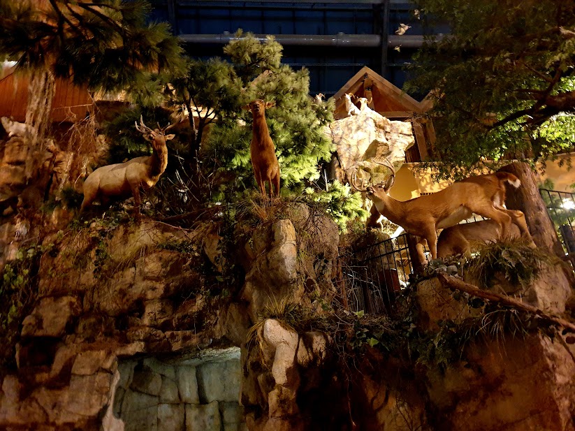 The entrance, with its wooden panelling and antler-laden lighting fixtures immediately whisked me off to a National Parks lodge (or Disney’s interpretation of them at least), infact the pyramid does have its own hotel located around the outskirts of the pyramid – you can even get a room looking inwards at all the mad theming! Sadly that wasn’t why we were here – though if I ever end up back in Memphis for some reason you know I’m gonna be pricing that up – so we continued onwards in to the main shopping area, and oh my.