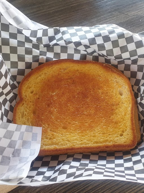By this point in the day, it was hot. 38oC hot. We were just about coping thanks entirely to the park’s dense foliage but simply could not face the idea of eating out in the heat. We checked the map, and looked around but couldn’t find a single place that offered indoor, air-conditioned eating. In desperation, I went into the Time Traveller shop and chatted with a member of staff to see if they knew of anywhere we could go, but were informed that there was nowhere. Not a single air-conditioned restaurant in the whole park. Our best bet would be a shaded area with a ceiling fan. So, that’s what we went for. Perhaps unsurprisingly, this wasn’t a park overflowing with vegetarian meal options either so I ended up grabbing a grilled cheese from a stand near The Flooded Mine and ducking into the shade. The ‘gourmet’ grilled cheese itself was extremely tasty, stuffed with cheddar and American cheese and fried in garlic butter, this was about as good as a grilled cheese gets! I just wish we could have eaten it somewhere cool.