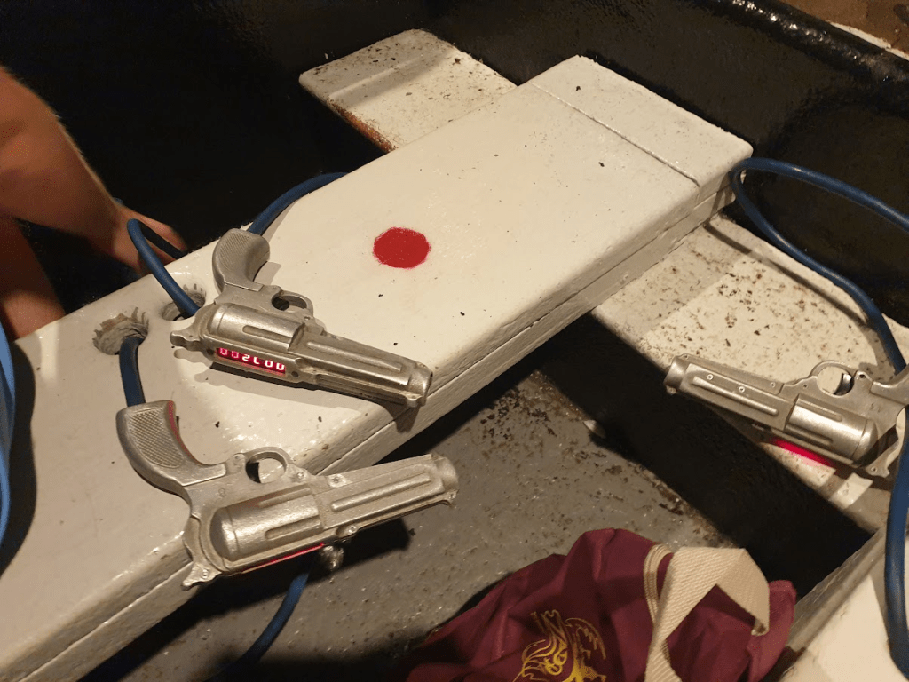 Desperate for anything that would get us in the cool, our next ride was one of the more unique (I’m using that word a lot to describe this park!) dark rides I’ve experienced: The Flooded Mine. A shooting dark ride, but in a boat, surrounded by water effects, this was a weird one! I wonder if this ride always had guns because honestly, I put mine down after a few minutes. With a solid five minutes of scenes packed with old animatronics depicting a flooded prison mine, it’s an outstanding dark ride as it is, the guns are just so unnecessary really and the boat isn’t built for them at all!