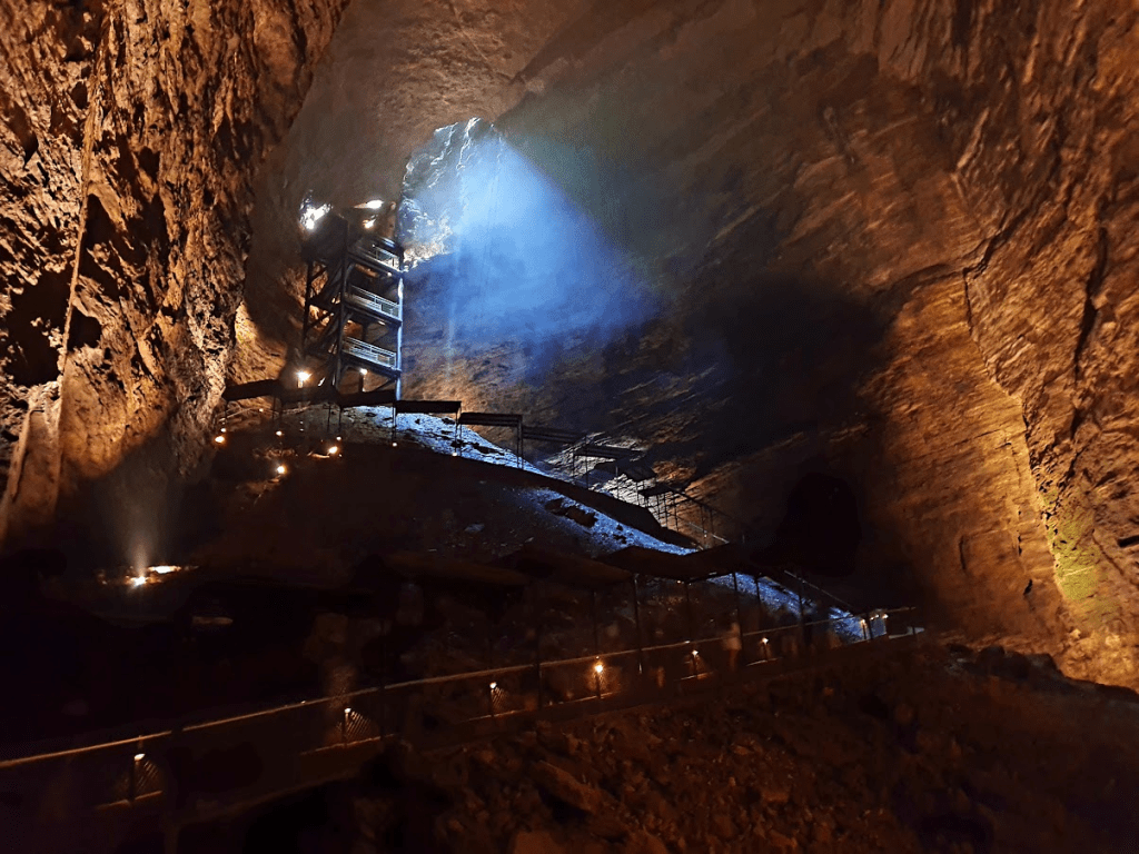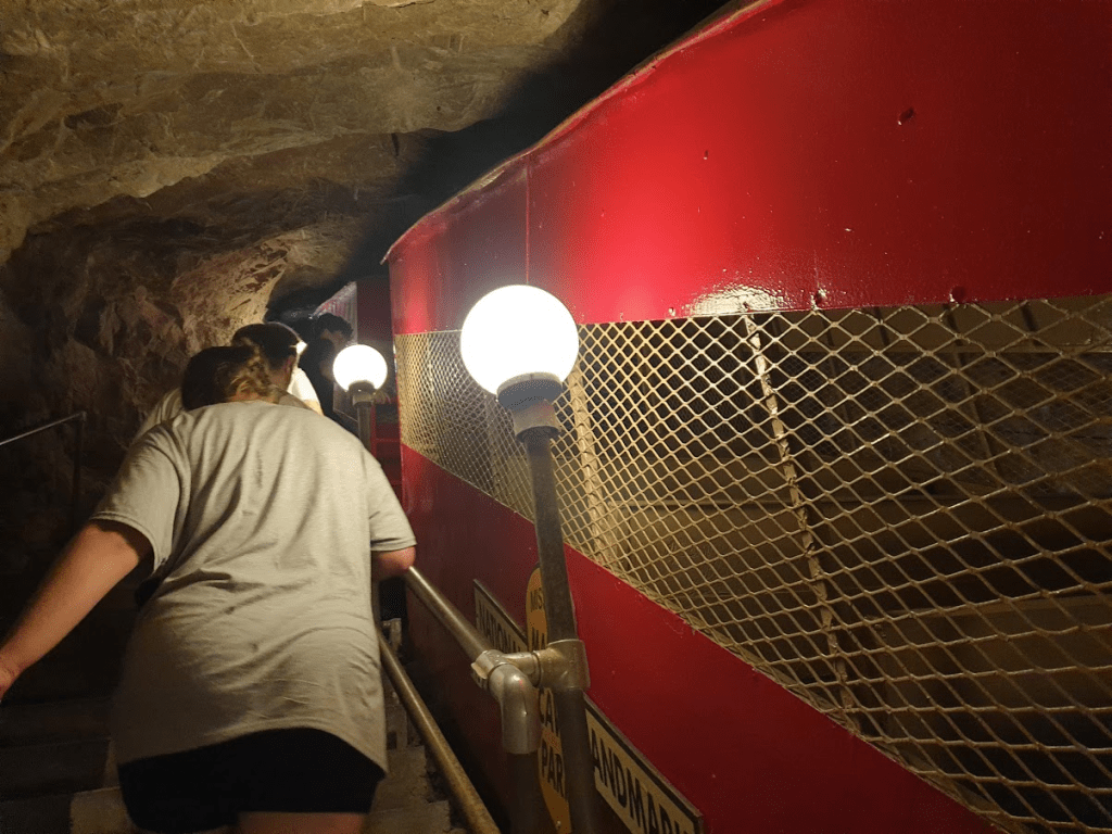 Whilst moving through a good number of spaces within the cave, our very knowledgeable guide stopped the group at regular intervals to tell us all about the history of this incredible place. And what a history it was! Between Spanish explorers, mining companies, vigilantes and a whole load of bats, I could have listened to our guide’s stories for hours. Thankfully, after descending 300ft of stairs into the cave, the route out was less strenuous with a 1957 cable train ready and waiting to take us back to the surface! Boarding an immensely angular train in a tiny cave space was quite the memorable experience!