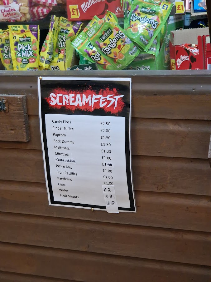 One final thing that seriously impressed me about Screamfest was how fairly priced it felt. The event’s shop sold a handful of merch items including a fully embroidered event shirt for £12.50. Twelve and a half Great British Pounds. For an embroidered shirt. That’s just madness! The sweet stand too was selling sweets at corner shop rates, which was really refreshing in an industry usually prone to squeezing every last coin from its captive audience! Also available from the shop were bonus maze tickets for £5 each, which was a nice touch. Had I not been 2 hours from home on a Sunday night, I definitely would have been buying an additional ticket and skipping straight down to Insomnia.