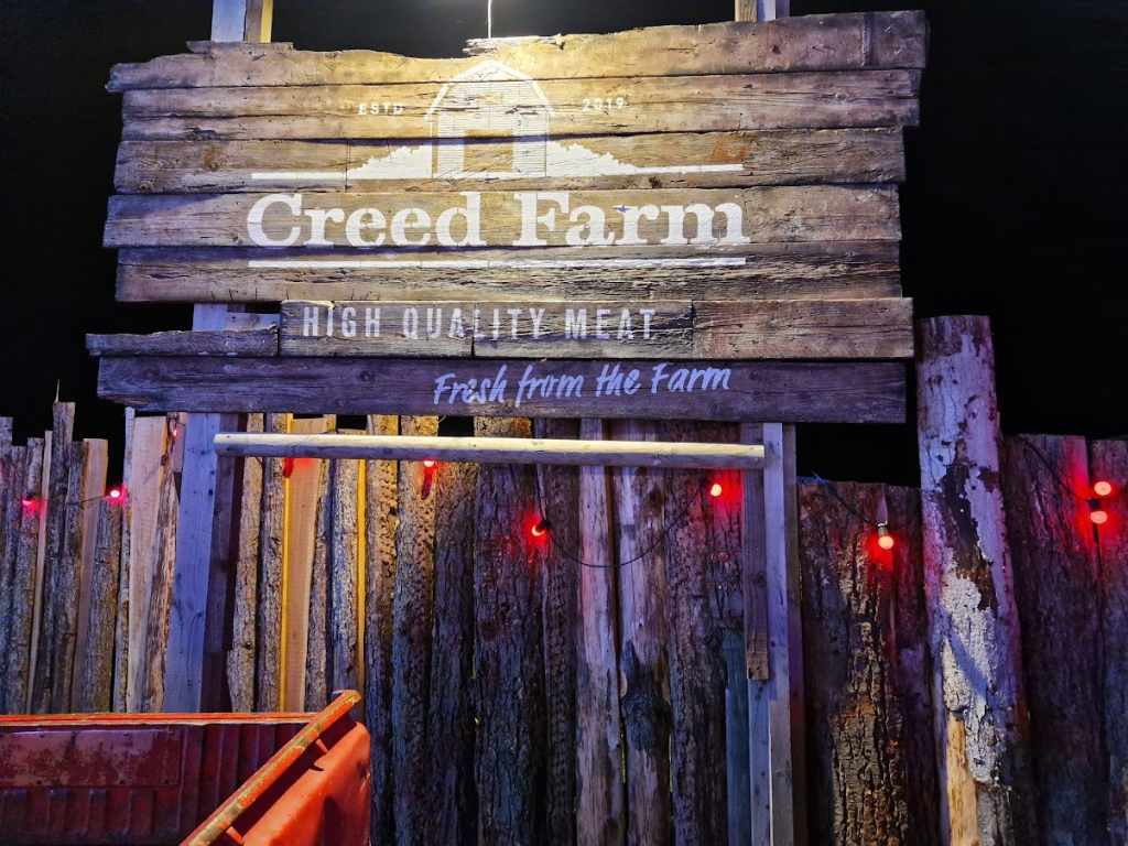 Thankfully, we stopped by Creed Farm next. Where do I start with Creed Farm? Well, for starters this was the longest wait of the night and by a hefty margin. But – in the same way a bakery with a huge queue outside usually makes some pretty banging cakes – it turned out the wait was for good reason. This experience was frankly ridiculous! First up, we had a pre-show presented by two fantastic bloodied-up farmers who were great with the group and had a talent for singling out the scaredy cats. From here we were dispatched into the attraction on one of two sides of a wall, with the actors using a door to close off each side in turn – doing so when it caused the most distress to the group, particularly those who seemed the most afraid – and being sent into what may as well have been a hooded maze. This section was pure, pure darkness. The sort where you have to hold your hands out in front to try and find any sort of path to follow. I found myself grabbing onto netting, and onto strangers as I pushed my way through the dark. This was yet another maze where you find yourself forming new friendships, determined to make your way through the horrors together. Stumbling out of the dark, clutching on to two women I’d never spoken to before in my life, and into the cornfield, we were cornered by actors who insisted the rest of the group – every single other person – go ahead whilst I – just I – was held behind. And from here I had what I can only describe as the closest thing to being in a horror movie that I’ve ever experienced (except maybe rural Arkansas). Whilst held back I was asked my name – in a very no-is-not-an-answer fashion – and this actor must have had some sort of mic on because from here every other creature knew my name. So I continued, alone, stumbling in the rain through a corn field lit only by an ominous red light as various monsters came at me, threatened me, cornered me against the corn, all whilst screaming/hissing my name. It was a good 5 minutes of hell (wonderful, immersive hell) – this is a lengthy experience – before I reached the rest of the group… just in time to get surrounded by chainsaws! With the actors focused on a friend, I made a dash for it (sorry Matt!) and tried to get out the exit without further chainsaw harassment – alas! I got chased down. Of course I did. Chased furiously by a chainsaw far out of the maze and all the way into the funfair. This guy was relentless! But what’s a halloween event without a good chainsaw chase, eh?