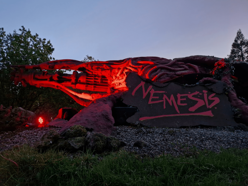 So, here we are. Despite a rocky start to our relationship, I knew I had to be there to wave farewell to the first iteration of what is now one of my favourite rides in the country. After a day spent getting in some final rides between intermittent downpours, Sunday 6th November 2022 found me on the Alton Towers lawn surrounded by some of my favourite nerds. We were waiting for the promised 19:30 announcement. Whispers had been rife all day that this announcement would confirm the much-rumoured return of Nemesis: Sub-Terra, so it was a (slightly disappointing) surprise when the announcement was just of the rides closure, but holy moly was it done well! Ever since the arrival of the now iconic closure posters, Alton Towers have leaned heavily into the lore surrounding Nemesis, and this announcement was the first sign that we were in for a highly story-based evening. With Phalanx officials announcing an investigation into the ride, whilst dropping lines like ‘you’ll join me in remembering what’s been an iconic presence in many of our lives’ this left me emotional due to both the impending ride closure, and also my deep love of theatrics. By the time the announcement wrapped up and it was time for the mad march up to Forbidden Valley to begin, my eyes were swimming with tears. Oh boy, this was going to be an evening.