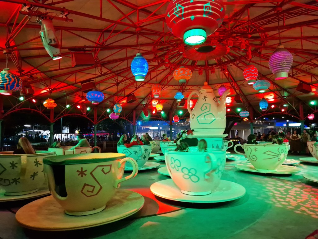 The party offers four attraction overlays, in addition to the available-as-standard Jingle Cruise. The extra-festive attractions include Space Mountain, Tomorrowland Speedway, Monsters Inc Laugh Floor, and Mad Tea Party. As these attractions are all relatively close together, it was surprisingly easy to knock them out at the beginning of the party. Of the overlays, Space Mountain is undoubtedly the most popular – and for good reason! During the event, the usual score is replaced by rock instrumentals of Christmas songs as red and green lights flash, so much so that the track is often illuminated. The lights also offered an exciting – for a nerd like me at least- ‘lights on’ view of the coaster when viewed from the PeopleMover! Double win. This was an incredibly fun ride experience, and one I’d definitely do multiple times on a future visit! I managed to save valuable time riding this prior to the official start of the party, just check with the ride host that it’s ‘switched over’ before getting in line!