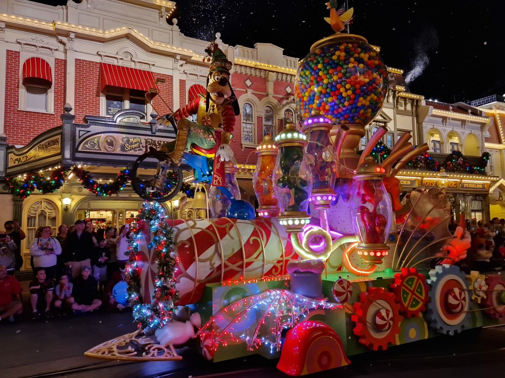 I need to break some bad news to you guys. If you’re watching Mickey’s Once Upon a Christmas parade, you’re going to need to try to get a space on Main Street. Yes, it’s the most popular parade spot, and thus the biggest pain to score, but trust me on this one. It’s worth it.