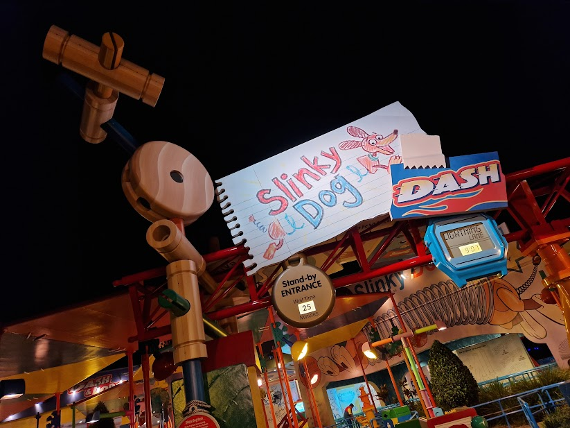 A little bit of an anomaly on this list, Slinky Dog is definitely the least thrilling rollercoaster to get a mention, but in my opinion is no less worthwhile! Unlike every other coaster here, however, we did only ride Slinky Dog once so I can only vouch for a back-row night ride, but I thought this was absolutely charming! Not only charming but a lot more fun than I thought it would be from seeing photos and POVs. Of course, it helped that the barren shadeless hell that is Toy Story Land becomes a fun cornucopia of coloured lights at night and that some Christmassy sound effects had been added, but there was an undeniable joy in bouncing over wacky-worm-esque humps in our little Slinky Dog. The second launch was zippier than expected too! Throw in a chunky animatronic Wheezy performing the iconic You’ve Got a Friend In Me as you sit on the brake run (more coasters should have brake run entertainment!!), and it’s a winner for me! I’m just not sure I’d wait in the lines it gets throughout the day. We hopped in line 5 minutes before the park closed and waited 15 minutes – perfection!