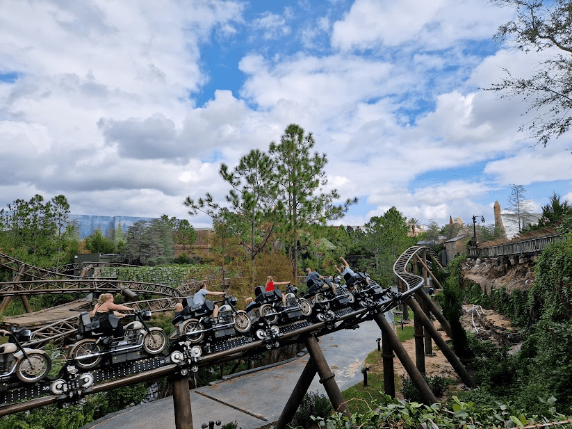 Going into this trip, it felt a little bit like Hagrid’s Magical Creature Motorbike Adventure (or Hagrids as I shall refer to it from now on) has become slightly forgotten. Following the addition of the next big dinosaur-themed thing, Hagrids is no longer the newest coaster on the Universal block and as such, doesn’t seem to have many people talking about it anymore. That was until I arrived at the park. Safe to say, it’s not been forgotten. The crowds this thing seems to pull are like nothing else at the resort. Of course, that may be a question of capacity or a variety of other factors including relatively frequent downtime – this is one of the most complex rollercoasters on Earth after all! But as I quickly learned through my time at Islands of Adventure, if you see this coaster posting a wait time under 90 minutes you are on to a winner! So, why is it so popular? Well, aside from being themed to one of the most popular franchises ever to exist, just the small fact that it’s one of the greatest story coasters I’ve ever had the joy of riding. A large part of this is, unsurprisingly, due to the aforementioned complexity. (SPOILERS AHEAD) This is a coaster that features no less than seven launches, two drop tracks (only one is experienced during the ride but there are two to aid capacity) and a vertical rollback which depends on the extraordinarily quick action of a piece of switch track. Sure, all these features contribute to downtime (though queue-times.com reports an incredible uptime of 98% for the past week when writing) but they also make for one of the most exciting, novel family rides out there. You truly never know what this thing will do next. I’d watched a POV and it still caught me unawares! And whilst Hagrids is designed for families, those launches are still thrilling, particularly if you’re sat in the motorbike seat! You see, on top of all of these tricks, the ride also offers two different riding experiences with both Hagrid’s motorbike and its sidecar to choose from! Unsurprisingly, I found the motorbike to be the superior option, offering a more exposed and thrilling experience. But you could stick a Zamperla Volare train on this thing and it would still be a delight. Alright, that might be pushing it. But the point stands.