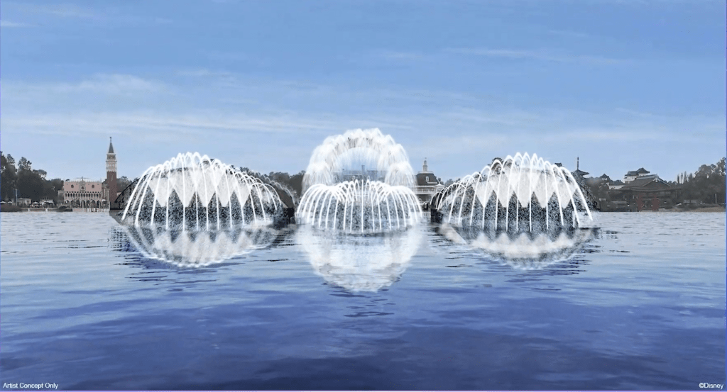 Replacing the beloved, 20-year-old, IllumiNations: Reflections of Earth, Harmonious is EPCOT’s new night-time spectacular, launched to coincide with Walt Disney World’s 50th-anniversary celebrations. The show was originally scheduled to launch in the spring of 2020, but you probably don’t need me to tell you why it was delayed. Instead, as the world remained on lockdown, theme park fans from around the world watched from afar as five monstrous pieces of kit made their way into the World Showcase lagoon. Because you absolutely cannot talk about this show without mentioning them. The barges. The previous visual splendour of World Showcase was now dominated completely by dark, hulking, technological behemoths. But never fear! Disney assured us that when in operation these barges will provide an ‘ambient feel’ during the day! They even released concept art showing what delightful fountains we could look forward to.