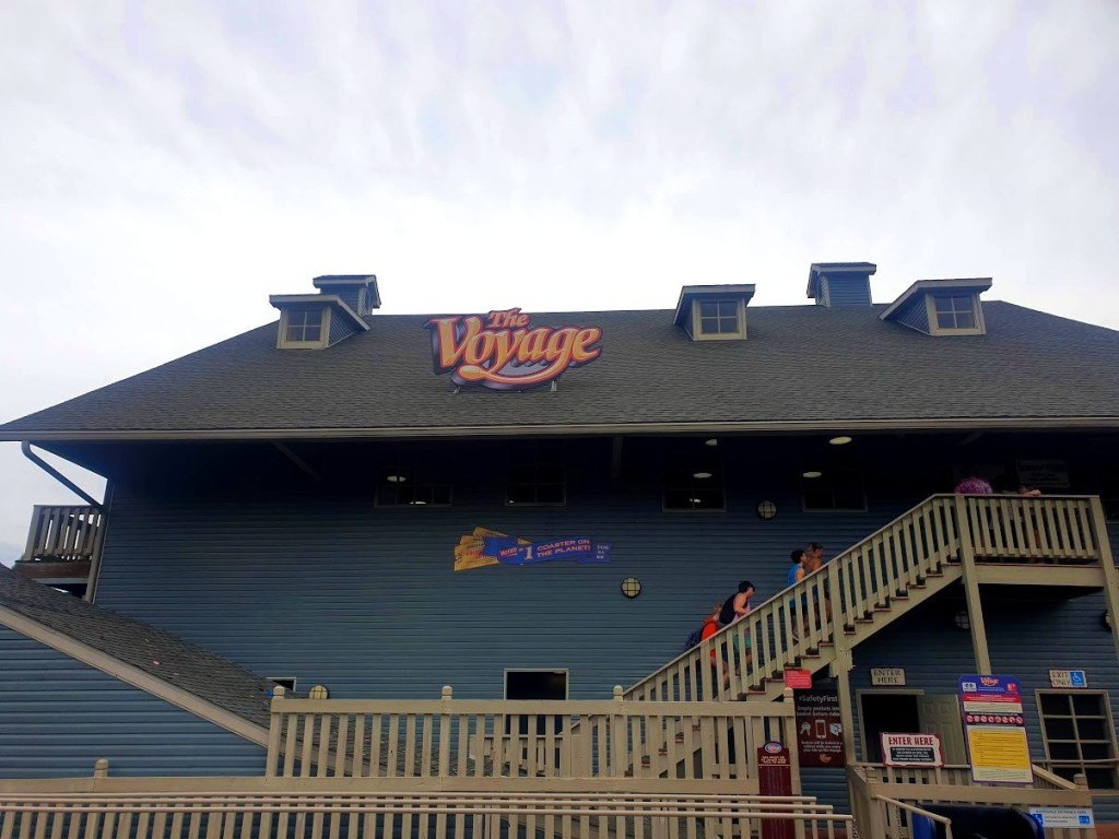 The Voyage is consistently ranked as the world’s greatest wooden coaster – as is proudly stated on the station building – and as such it’s safe to say we were more than a little bit excited about it. Some rollercoasters are just legendary. Mythological beasts that have been in so many rankings, so many awards, so many WILDEST ROLLERCOASTERS IN THE WORLD shows and videos, that they take on a fictional quality. Amongst those, perhaps even chief amongst them, was The Voyage. It’s in a small park in Indiana for crying out loud, how would I ever get to experience that?! Well. Here I was. Holy. Shit.