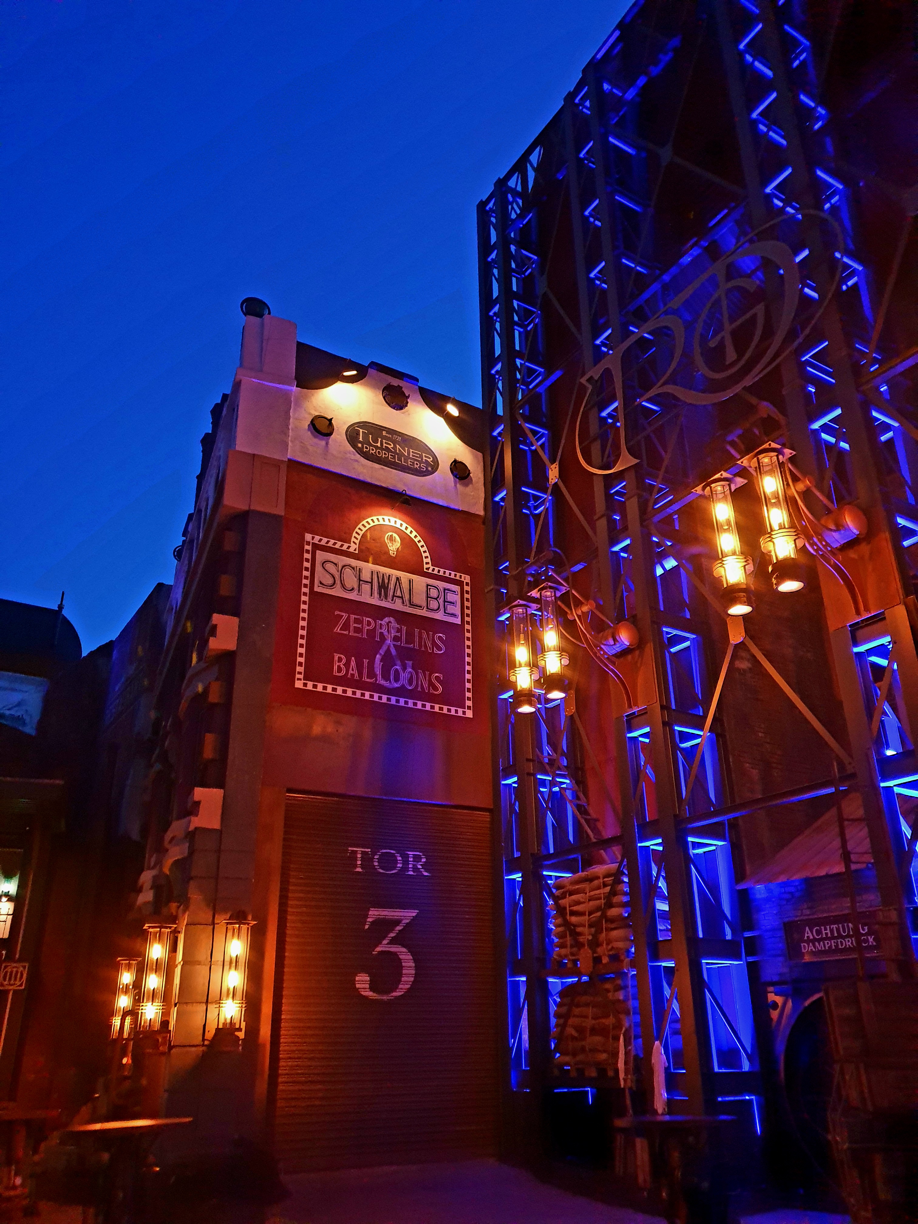 But I know that for many people, a Taron night ride isn’t their main goal. Their target instead lies over in Rookburgh, and with the land’s only attraction, the stunning, one-of-a-kind Vekoma flying coaster F.L.Y. It’s not hard to see why. Rookburgh is astonishing at night. Its steampunk, industrial theming just screams out for incredible lighting and it goes without saying that the park did not fail to deliver. The uplighting? Spectacular. The yellow light tube things that I wish I knew the name of? Gorgeous. The steaming, glowing grates on the floor? Jaw-dropping. So why on earth wouldn’t you want to FLY through all of this?! Well, for me, F.L.Y. actually had a little bit of a redemption arc this visit. On arrival at the park, it’s safe to say I wasn’t exactly excited for a F.L.Y. night ride. I’d accepted that I ought to get one whilst we were here, but my previous three rides had all been so abysmally painful that I wasn’t much looking forward to the experience. In the past, my chest had been so forcefully pressed into the restraints that I struggled for breath, only ever catching a gasping breath during the moments of (insane, beautiful) airtime. But, and I’m so happy to say this, my two rides this trip were comfortable, fun experiences! I don’t know what it was that changed. I’d been given the advice to push my shoulders up when fitting the restraint, in order to give myself additional chest space, so perhaps it was this? Perhaps it was all the layers I was wearing? Or maybe it ran slower in the cold? Whatever it was, I finally fell in love with F.L.Y. I get it now. It’s a beauty. A real beauty. And the night ride was spectacular. The environment of this ride always makes for a special experience, but with that glow, twisting and soaring around the Hotel Charles Lindbergh, it really is something else entirely. It’s still not a ride that makes my top ten – I just don’t think I’ll ever be enough of a fan of the flying position really – but it’s certainly made it’s way on to my must-do-every-time list, and I cannot wait to experience it again!