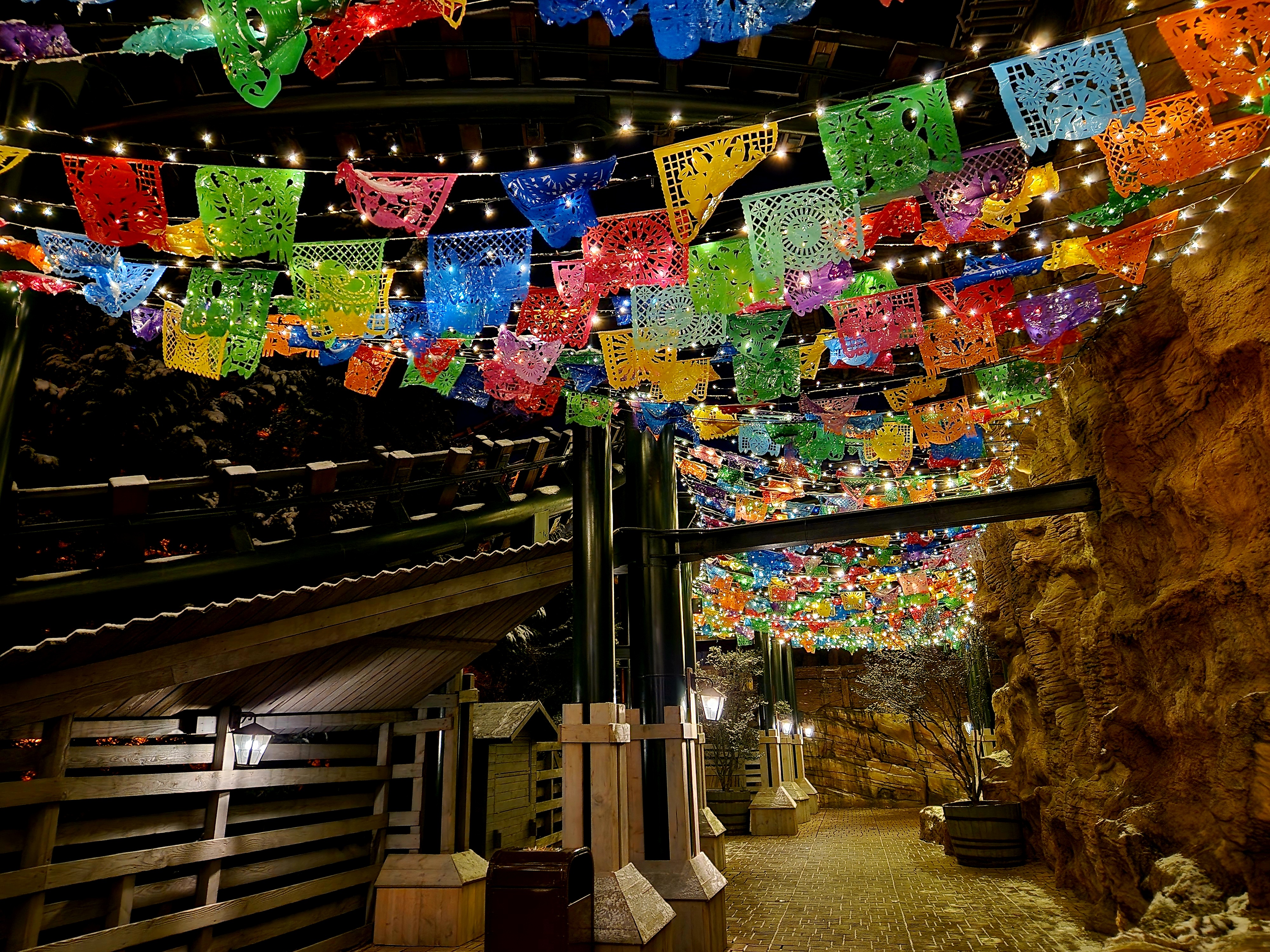 Listed on the boards around the park as the Wintertraum show highlight, Tiempo de Fuego is a large-scale projection mapping and fire show in Mexico, taking place on the front of Chiapas. The first I actually saw of this show was from Taron – zooming past huge shots of fire isn’t something I’ll forget in a hurry – and though we were already keen to catch it, those views made it a total must-do for us! And I’m glad we caught it! Was it the show stopper I expected? Eh, not quite. Honestly, it’s a bit dis-jointed. Instead of being a projection mapping and fire show, Fuego was honestly more of a projection show, followed by a fire show. Both were impressive, but could have totalled more than the sum of their parts if used in unison to tell a story. It’s still very worth catching if you get chance, but given the choice between watching again or grabbing a night ride on one of the major coasters, I know which I’d choose!