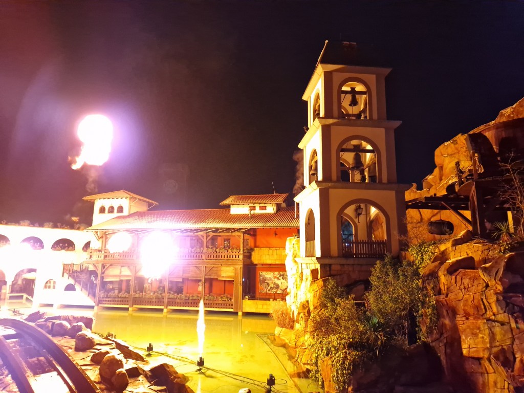 Taron, at night. This entire trip happened for one reason and one reason alone. I needed to know what Taron at night felt like. After all, I knew how it felt in the day. An elating, overwhelming, immersive experience comparable to almost nothing else in the world – only VelociCoaster comes close in my opinion! But at night? I could only imagine what a coaster that made me cry in daylight would do to me when I also had the lighting design to enjoy. And what lighting design it is. I’d seen the photos. I’d seen the red ethereal glow emenating from the ride’s second launch, the smoke filling the crevasses of Klugheim, the ominous blue glow against the rockwork. But nothing could prepare me for seeing it in person. That sentence originally read ‘in person for the first time’, but that’s total rubbish. Klugheim at night stole my breath each and every time I passed through, safely securing it’s place as my favourite theme park land in the world. I already knew that it was a themed design masterpiece, but having seen the land lit so meticulously, it has simply become transcendent for me. I’ve gone on a little bit of a tangent here, we were meant to be discussing Taron after all, but to talk about Taron is to talk about Klugheim, the two are so intricately interwoven. But the ride experience itself? Like almost every rollercoaster I’ve ever experienced, the darkness elevated the experience enormously. Thanks to that incredible design, and the theme of the ride, Taron becomes an entirely different beast at night. Taron is a moody coaster. It’s atmospheric. It’s dark. It lives for the night. The incredible dispatch music just sounds all that more ominous when you’re rolling in to a sea of red smoke, and once you launch and begin to twist and dive through the vast rockwork, those nooks, the corners, the tunnels, they’re all so much more intimidating when they appear to be nothing more than a void. Eventually you reach one of my favourite rollercoaster elements out there: the second launch. Here, you once more roar in into a sea of red smoke, utterly disorentating and delighting in equal measure (they managed to make my favourite part even better!) before emerging from the top of the rockwork to be greeted by the sea of lights beneath you. Sightlines be damned, there are few things better in life than being on an elite rollercoaster and seeing a theme park sparkle beneath you. Big Thunder, Zadra, VelociCoaster… each and every one made better by the thematically-inconsistent lights in the distance. Likewise Taron. On one ride we were lucky enough to fly past both the projection show on Mystery Castle and the wild flames of the Tiempo de Fuego show at in Mexico, a ride that is up there amongst the best ride experiences of my life.