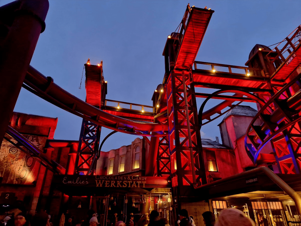I first visited Phantasialand just 7 months ago (at the time of writing) in June of 2022. The weather was gorgeous, with temperatures nearing 30 celcius, clear blue skies and long sunny days. But with 6pm park closes and 10pm sunsets, it’s safe to say I never even came close to seeing what this park could look like at night (with the exception of Rookburgh – we stayed in Charles Lindbergh!) With so many European parks still on my to-do list, I certainly did not expect to be returning to Phantasialand within a year, but with the park’s Wintertraum event stretching late in to January (the final day of operation being January 29th) when very little else is open and I had a little free time, what’s a girl to do?! Particularly when the event offered that rarest, and most wonderful, of opportunities: the chance to see one of the most beautiful theme parks in the world at night.