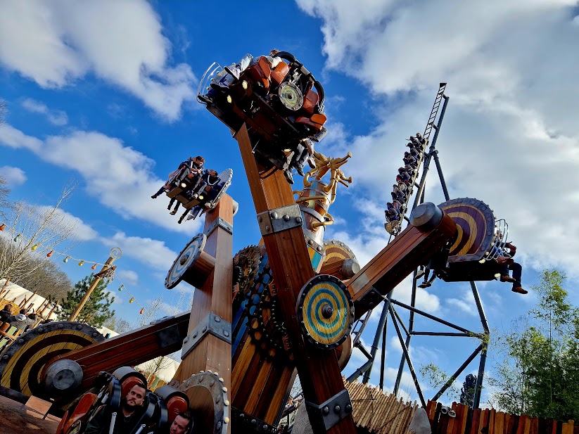 But that’s not all that’s new at Parc Asterix! Toutatis is no stand-alone addition, it’s located within a brand new land, Festival Toutatis. As well as the coaster and its accompanying gift shop, guests can find a beautifully themed Zamperla NebulaZ, a children’s play area, and a quick service restaurant.