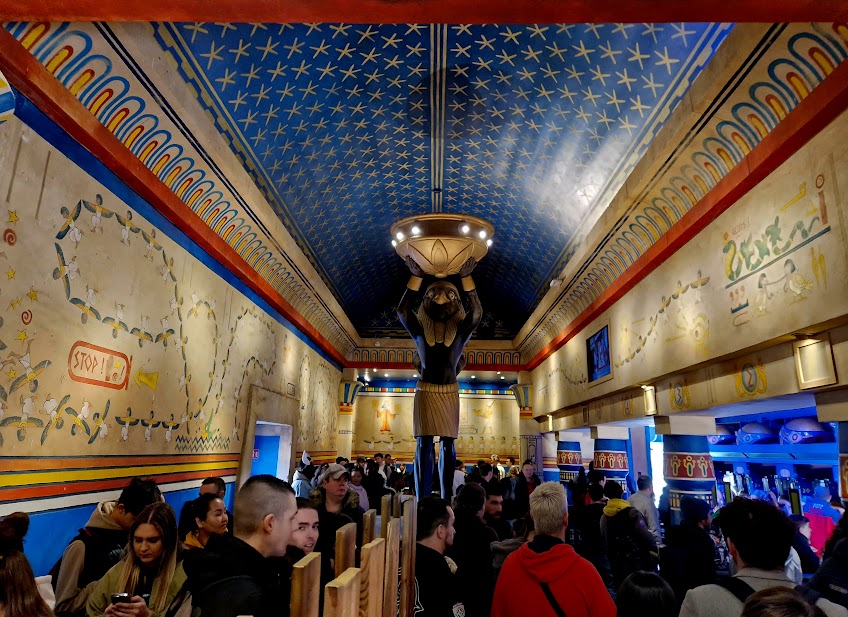 Elsewhere in the park on this sold-out day, things were busy but reasonable, with most major coasters topping out at around an hour. Over in Egypt, OzIris had its single-rider line open – a first for me in three visits. This meant we were able to hop on the ride in less than ten minutes, skipping an hour wait! I even scored a back-row ride! This beast remains my favourite invert in the world, and the second zero-g roll will never not have me giggling like a little kid. May the single-rider line forever be open!