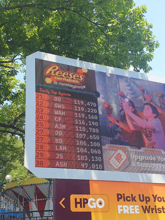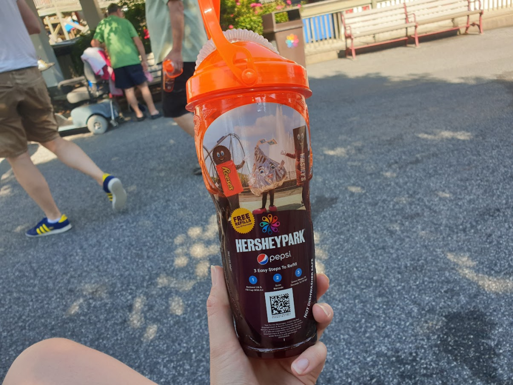 After having such a fantastic time on Skyrush, my spark was well and truly back and I was ready to take on the rest of Hersheypark. But first, I needed a drink! Throughout the trip, in a (failed) attempt to stay hydrated, I’d been buying an all-day drinking cup wherever offered. With Hershey being our final independent park, this was the last such cup I purchased and was without a doubt the worst of all the drink programmes we experienced throughout the trip. This is almost entirely due to availability, with large areas of the park entirely devoid of refill locations, inevitably meaning that when I did find a machine, the queue was always very lengthy. Of course, these queues could also be due to the extraordinarily faffy system in place to obtain refills. To use the Hersheypark cup, a barcode on the cup must be scanned, after which you will be granted 30 seconds to fill your cup. Simple enough in theory. However, on multiple occasions, the fountains didn’t become operational until the third or fourth scan and whilst waiting, I also watched many people also struggle to obtain their drink in the allotted time and then continue to attempt to draw drink after their time had ended. All of which left me dreading having to go refill. It’s worth noting that the drink selection was also comparatively poor, with the only sugar-free offering being Diet Pepsi. But at $18.99 for all-day, compared with 4.99 for a single pour, it still offered decent enough value.