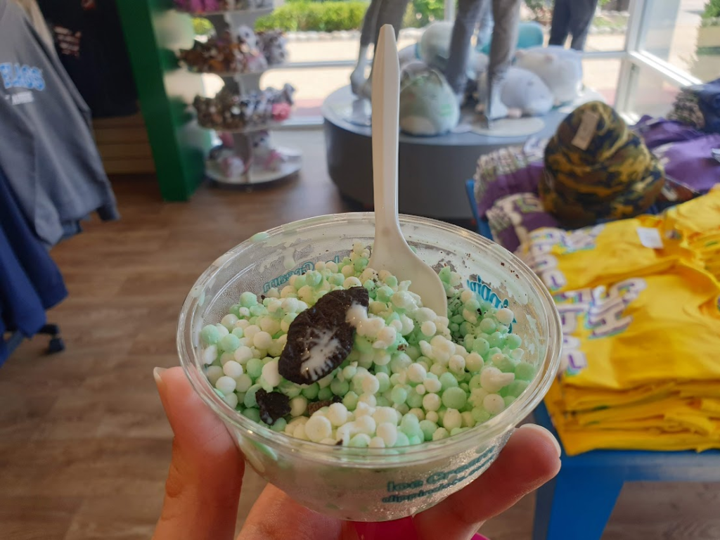Usually, around this point, I’d throw in some discussion of the food and beverage options at the park, but I’m afraid to say I have nothing. It was so unbearably hot that I couldn’t stand to eat a single thing for the entire time we were in the park. Okay, that’s a lie. Lunch was a pot of mint Oreo flavour Dippin’ Dots, which were sublime but at which point I was so overwhelmed and broken by the heat that I ended up eating stood in the corner of the air conditioned gift shop (with the permission of a kind staff member!)