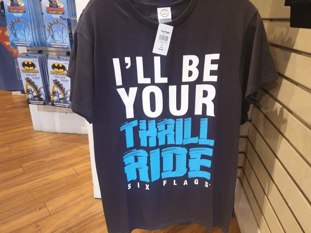 On the topic of merch, Six Flags really fall down here. I have a t-shirt from every park we visited throughout this trip with the exception of Six Flags St Louis. Six Flags Great Adventure had nothing better than St Louis, but I really wanted something from here so plumped for a bright purple shirt with the park’s name on it. It’s rough fabric, and the print is cheap, but it’ll do. Of course, I really wanted a Kingda Ka or El Toro shirt but hell will freeze over before I buy a shirt covered in stats and declaring my bravery in surviving the ride, which was sadly the only option.