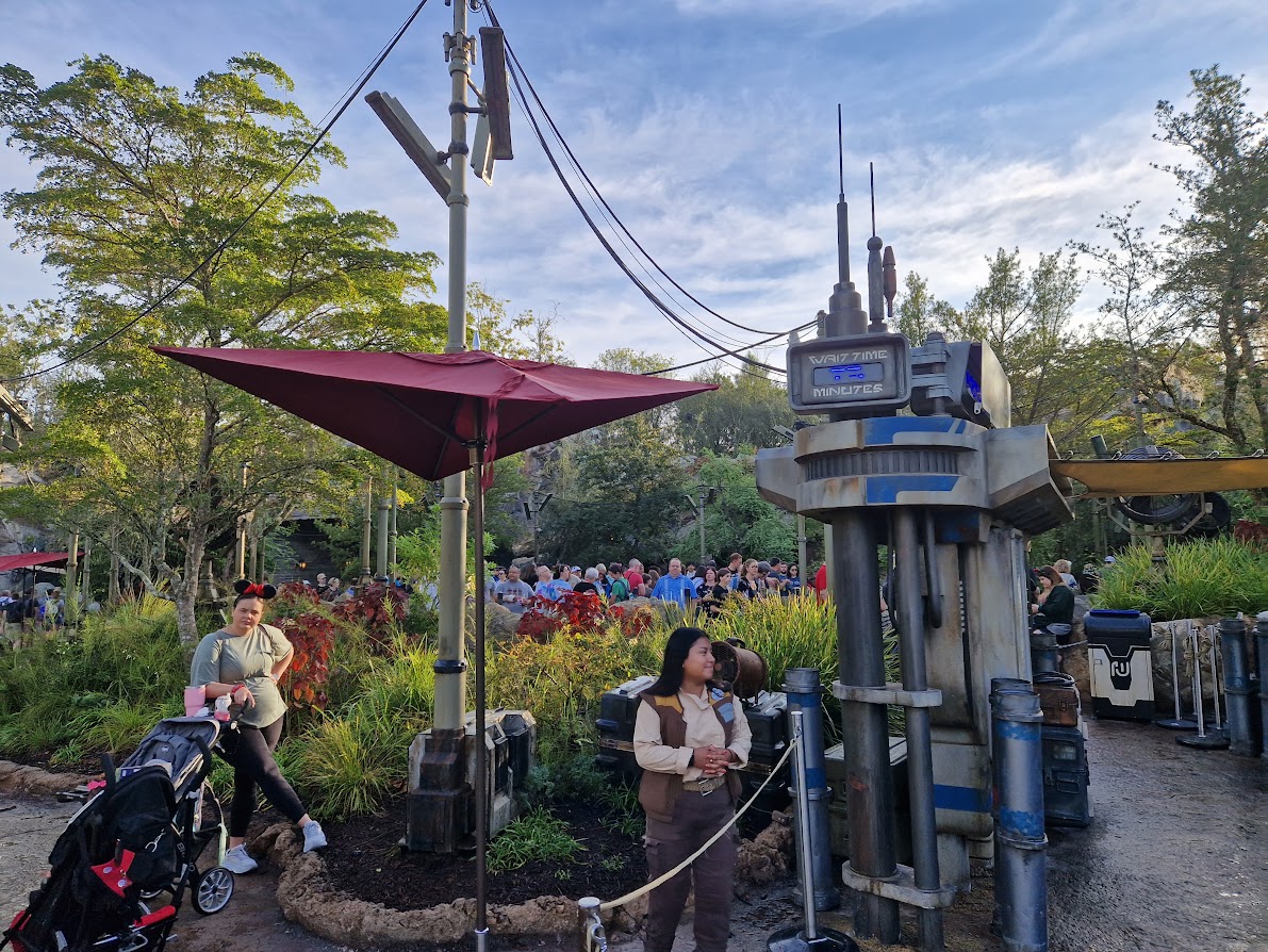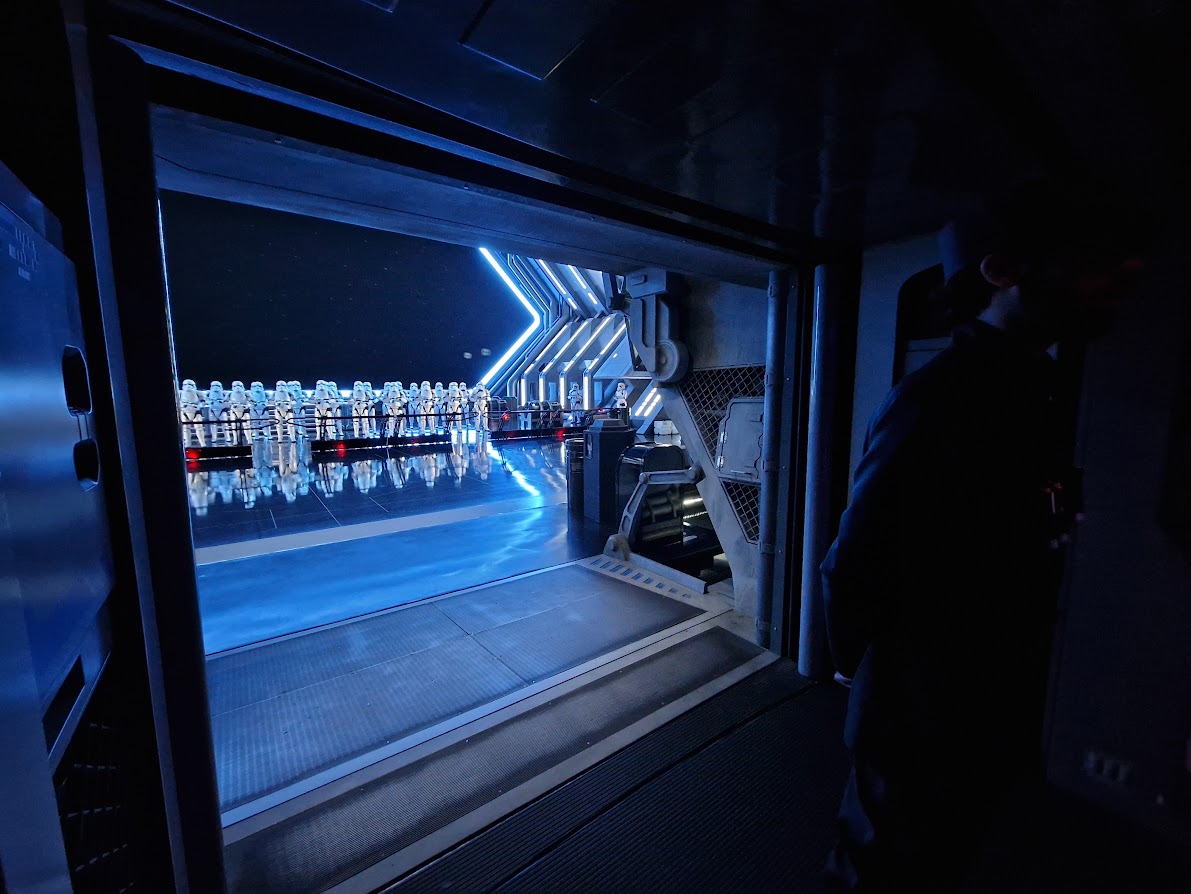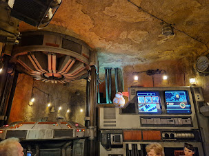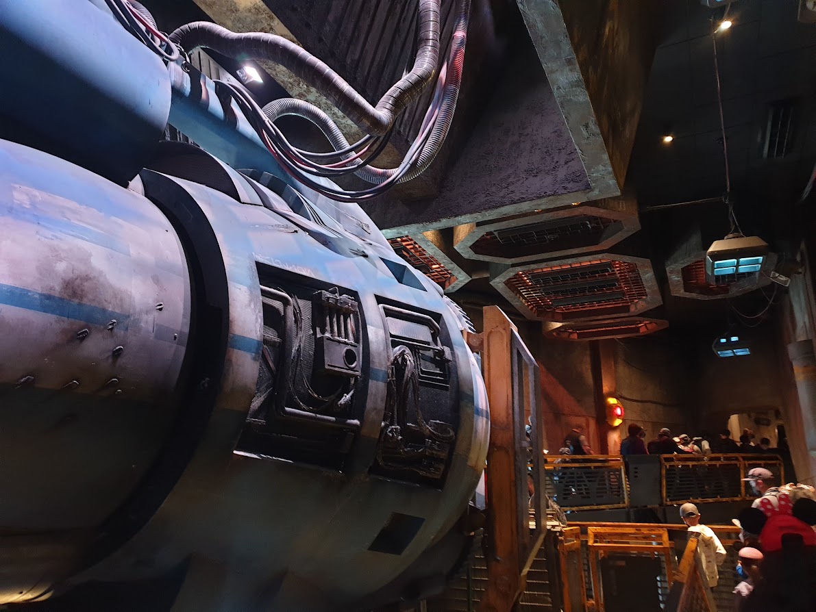 And on the other side of Batuu, and the bottom of my list? Millenium Falcon: Smuggler’s Run. (Yes, I really do prefer Alien Swirling Saucers.) It doesn’t help that my first experience of this attraction was a nightmare. Eagerly skipping in line past the 10-minute posted wait, it was an hour before we finally entered the pre-show. (The attraction had broken down and no communication was offered.) When we did eventually make it through, we were greeted by the key animatronic wrapped up in its B-mode shroud, and Hondo greeting us instead on a screen. But that’s okay, we’ll be hanging out in the Falcon soon! Nope. As soon as we exited, we were told we weren’t allowed to explore any of the Falcon and instead should head straight to our pod. Where we were assigned Engineer, the widely-acknowledged worst role. *sigh* And, well, the ride experience didn’t save things. I found the buttons distracting, as I tried to pay attention to the action, whilst the entire time I was violently being slammed around as our child pilots failed to grasp what was being asked of them. Not that I blame them. They were in the Falcon and having a great time pushing buttons! I just wish it didn’t make the ride quite so aggressive when the targets were missed. I did re-ride and had a better experience. Finally, I saw Hondo in the (rubber) flesh and got to see the Falcon. But even on a second ride, the experience itself began to get old. For me, this attraction is just worse than Star Tours in every way – except the facade, of course. That Falcon is insane.