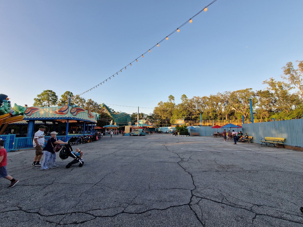 I’d actually already written an entire entry here for Kali River Rapids, and then I realised I’d completely forgotten an attraction: Triceratop Spin. It’s easy to forget, being a bog standard spinner ride located in the unloved car park that may be the worst area of any Disney Park (thanks Backlot for vacating that spot!) In fact, I don’t even have a photo of this ride, but here’s some of the tarmac. Enjoy.