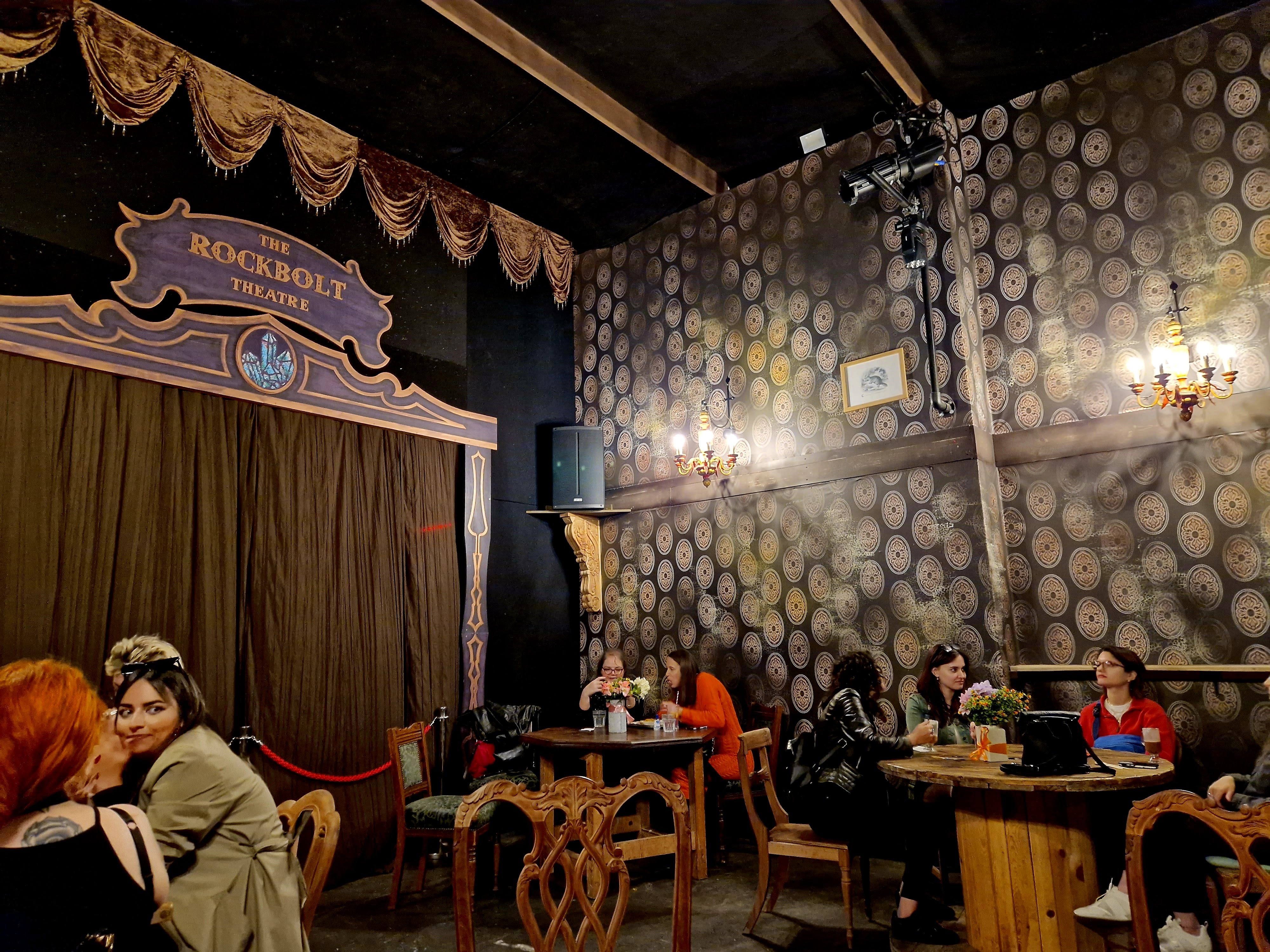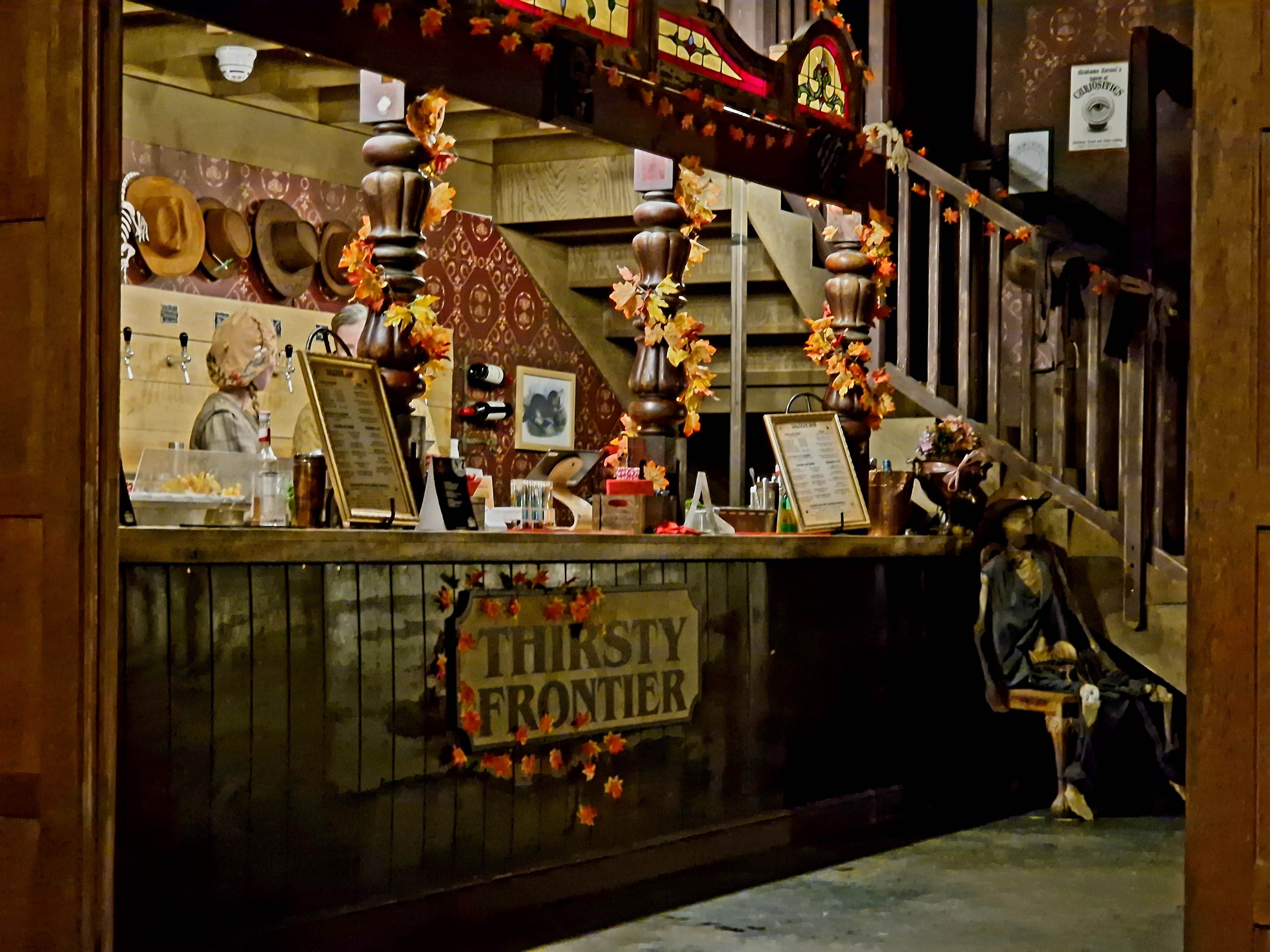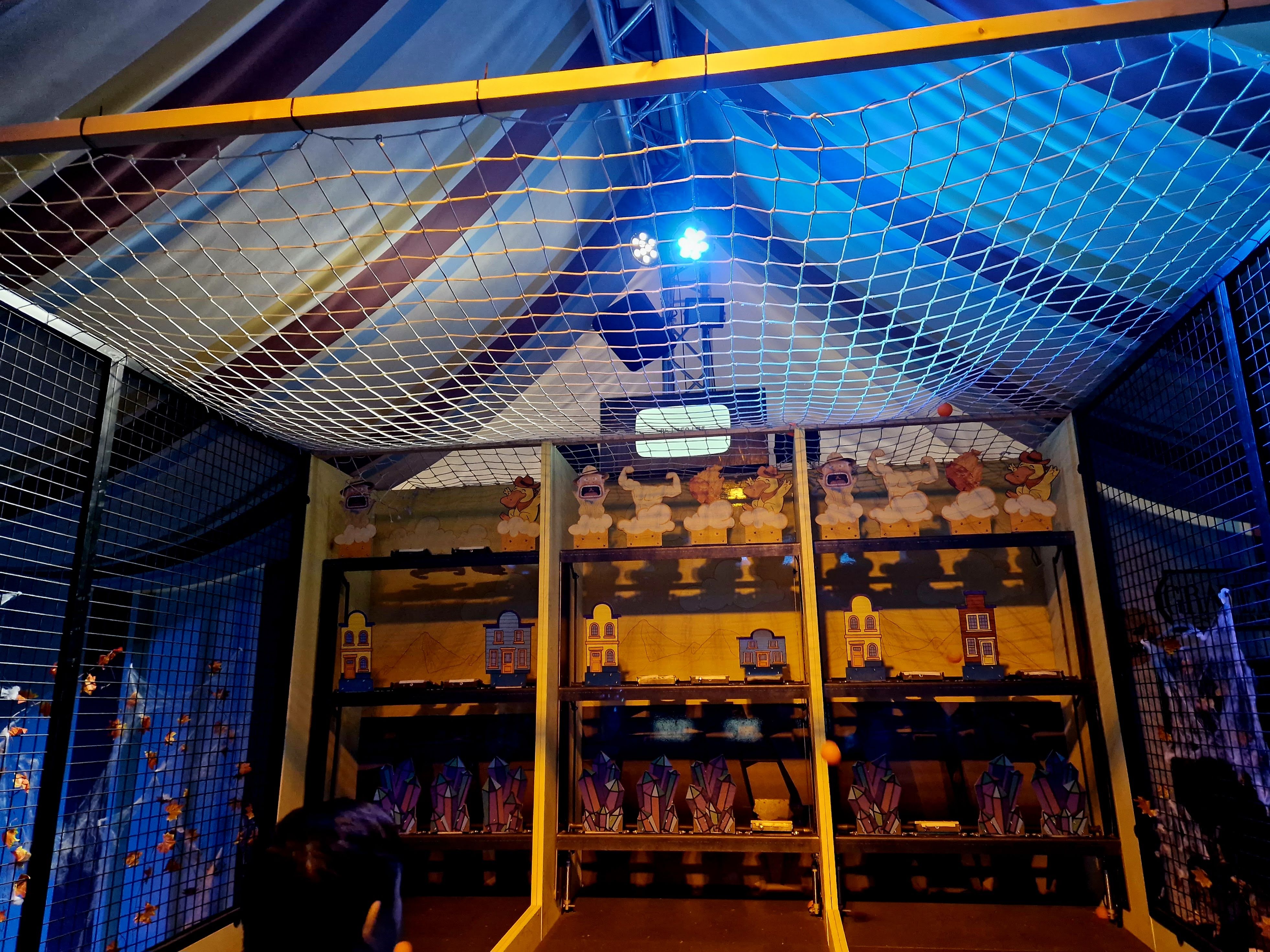 So, outside of the trails, what is there to do? Well, our first break from the set trail was the ‘Miramaze’. We nipped in for a quick bit of fun, expecting this – from the name – to be a silly little mirror maze. Reader, I quickly discovered why the website had asked if I’d be happy to crawl. This was no mirror maze. Instead, it was a series of tight corridors leading to a messy jungle of bungee cords, which we had to manoeuvre ourselves through, whilst the ceiling got lower and lower. At the end of it all waited a ball pit, whose depth I completely misjudged and ended up flopping into the sea of bright plastic balls. All in all, it’s a lot of fun and far more unique and challenging than a mirror maze! There is also a small selection of free-to-play carnival games, including a custom version of Down the Clown, a favourite of mine! If you’re looking for more games, there are also a handful of arcade machine featuring custom versions of classic arcade games, including ‘Union Buster’, a version of Space Invader where you literally throw the book at union members. Finally, you’ll find a gift shop filled with cute merch – plus good quality cowboy hats for just £10 – and plenty of photo opportunities scattered around. Aside from that, your options are pretty much just enjoying food and drink. We didn’t really find Phantom Peak offered much as an unguided exploratory experience. It was all but impossible to spend more than a few minutes on any of these activities without unfairly hogging them, and outside of those, the endless rooms within the experience pretty much uniquely housed clues and information related to individual trails, with not much to interact with should the information not be relevant to you. That’s certainly fine, but when we finished up our trail without enough time to do another, but with time to spend we found ourselves wishing there was just a little more for a casual wanderer to do. We probably should have just started a new trail and moved fast!