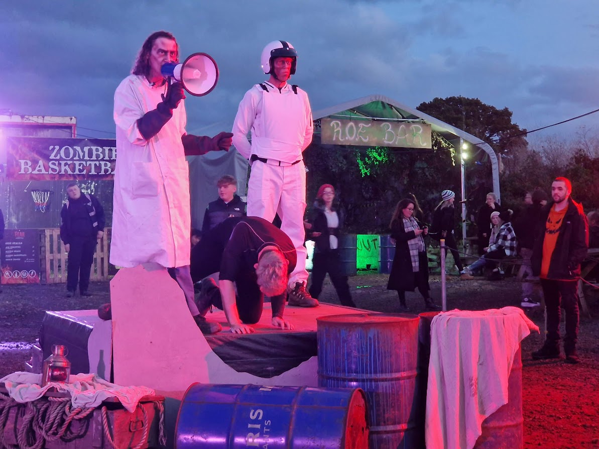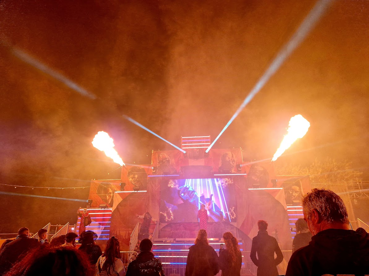 New for 2023 at Screamfest was Psycho Circus, a show packed with circus acts that had me in pieces. In a way I’m not sure was good? But I adored all the same. The entire premise of the show was that all the performers were hellish monsters who had escaped from hell and were being sent back by this fearsome overlord character (I think). Except, the ‘monsters’ were just really talented folk and the lord of darkness character was a bloke in a waistcoat who gave the vibe of the sort of guy who’d always get the first round at the pub. It was corny, delightful and filled with astonishing talent. I’m not sure it meant to make me laugh as much as it did, but I loved it for it all the same. (It’s worth noting that I actually thought this attraction would be a scare maze as it’s listed on the website under scares rather than entertainment so I was very disappointed that there wasn’t actually a new maze this year!)