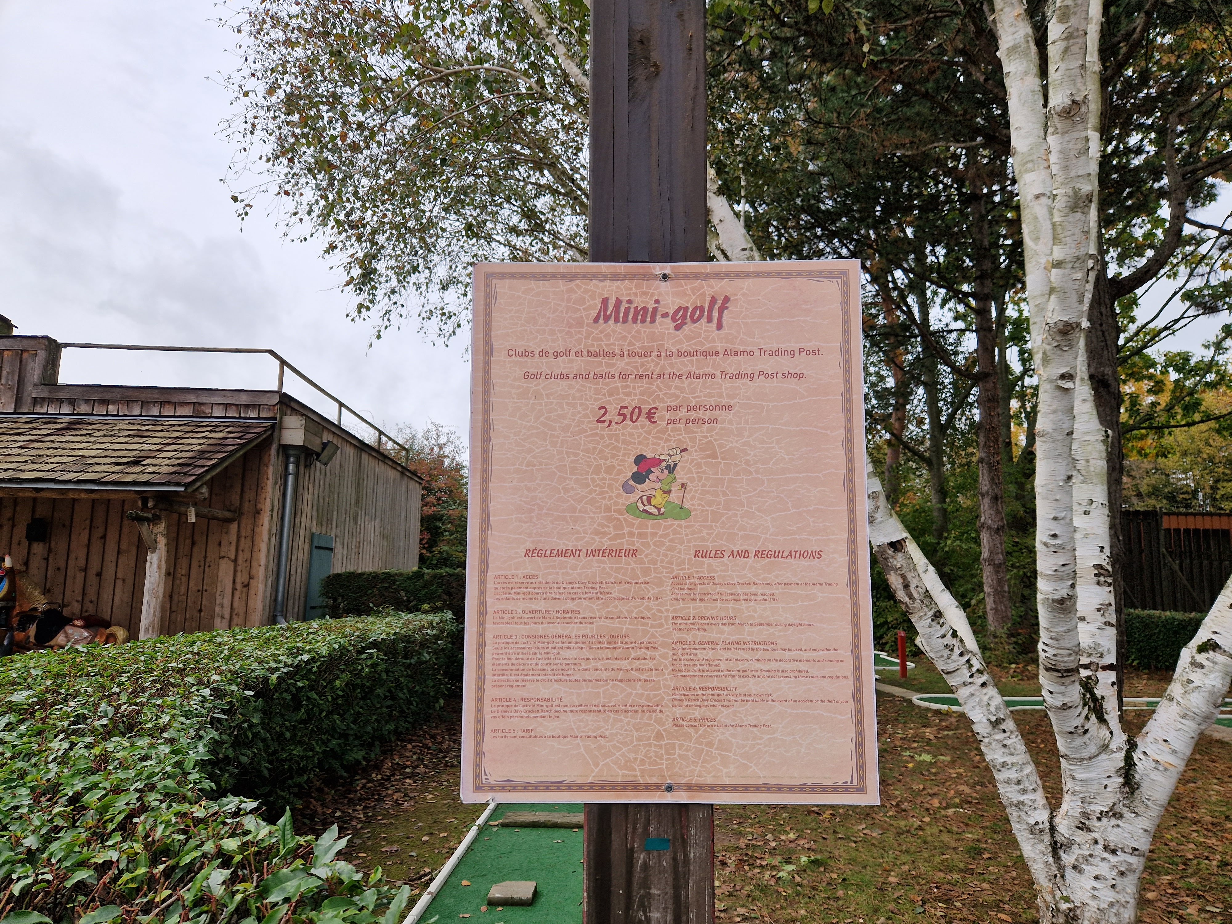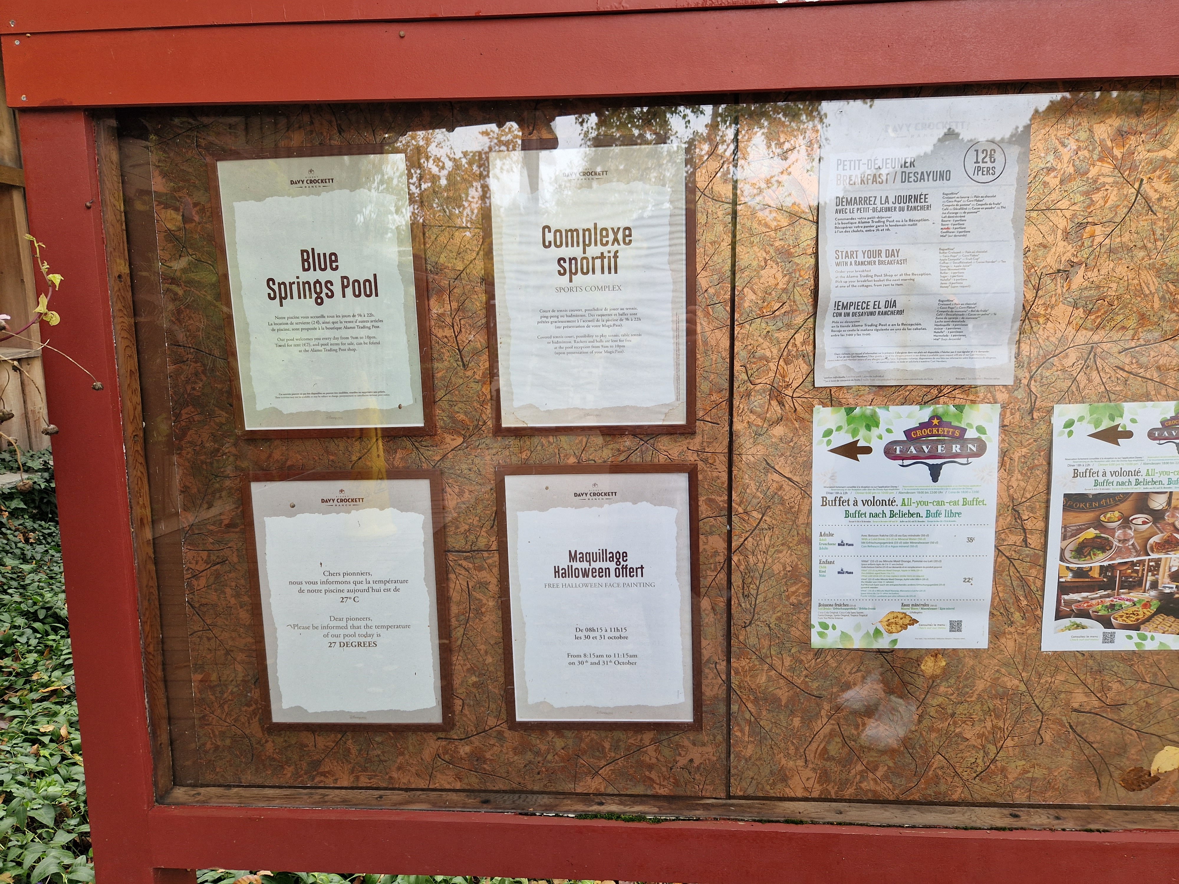 Adjacent to the gift shop, you’ll find the resort’s food and drink options. During our visit, the Saloon was only open in the evenings from 17:00 – 22:45. With a 22:00 park close and the need to drive back to the resort afterwards, this sadly meant that we never got to experience this particular offering. For guests staying on days with an earlier park close or who just like to head back a little early, however, it looked like a small but nicely themed space. At Disneyland Paris, the bars are priced according to the hotel’s price bracket, with all the exact same drinks priced differently at each. For instance, at the time of our visit, the value resorts charged €7 for the seasonal mocktail, whereas the moderate resorts charged €10. You’ll be glad to know that Davy Crockett is firmly in the lowest price bracket available, so get your cocktails here (as long as you’re not the one who has to drive back to the cabin!)