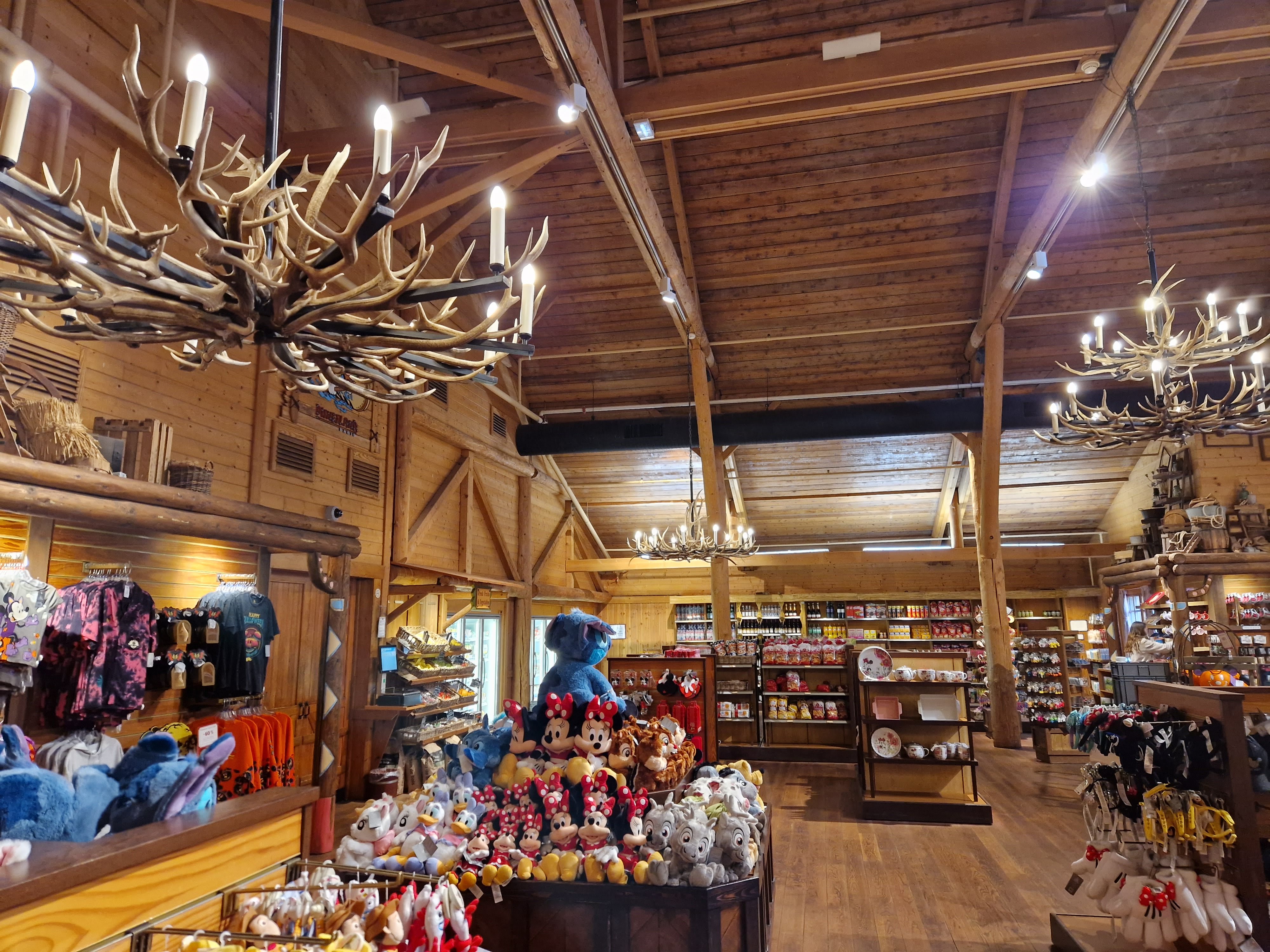 Perhaps unsurprisingly, of all of these options, the only one we made very good use of was the gift shop. Alamo Trading Post is located in the heart of the resort and sells a very good selection of the core range of theme park items. If you’ve arrived at Disneyland Paris for the first time and want to quickly grab some ears or a t-shirt, they’ve got you covered, In fact, even if you’ve visited Disneyland Paris many, many times, stopping here first may be a very good shout. With far less foot traffic than the regular Disneyland stores, you’ll often find some items here that you might not see elsewhere. In our case, we arrived on the second day of the Halloween sales and found some bargains in our resort shop that we never saw stocked in a single other outlet. Well worth the look! Alongside the merchandise, you’ll also find a large supermarket section, with plenty of options to prepare in your cabin. Behind the tills, there is also a selection of fresh bread and pastries, cooked each morning, for sale, perfect for a speedy breakfast (plus they are still delicious when being sold at half price in the afternoon!) One thing that took me aback here was just how reasonable the pricing on a lot of this stuff is. For Disney fans like me, many of the prices were unrecognisable. Here, you’ll find cans of Coca-Cola for a little over €1, and 1.5l bottles for less than €3! With one 500ml bottle costing €4 in the parks, we made sure to stock up every day. Of course, the space is also very nicely themed, with gorgeous antler-style chandeliers lighting up the cabin and what appeared to be an entire hunter’s cabin set up on the wall!