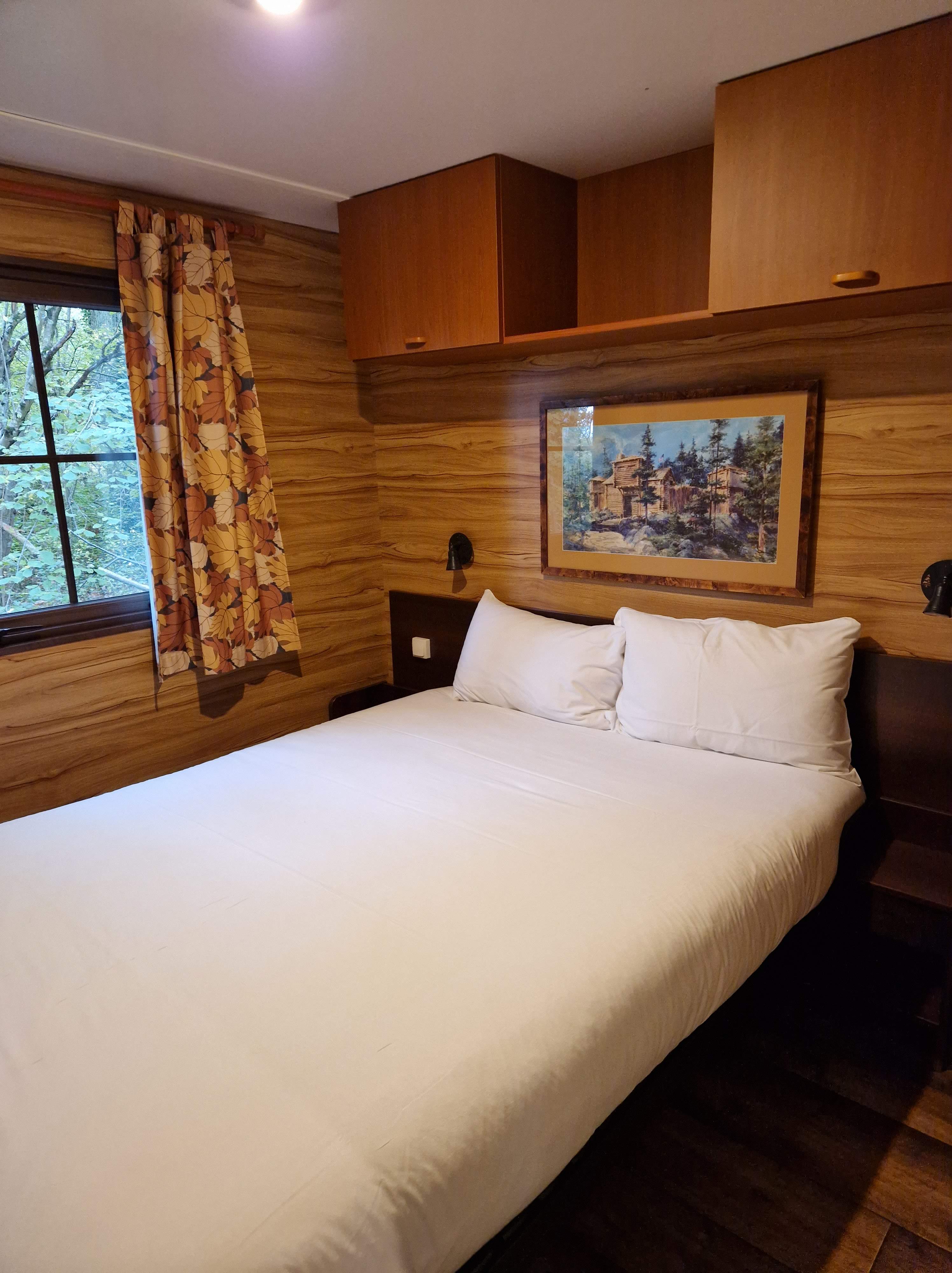 So, what exactly is a cabin at Disney Davy Crockett Ranch? Well, it’s a static caravan nicely themed to look like a log cabin. As previously mentioned, it’s necessary to drive down to your cabin, so as expected, each cabin is furnished with its own parking space. It’s a very rare treat to park directly outside your room, and it definitely counts as a perk of staying here! Outside, you’ll find a private decking with a picnic bench, and I also noted a barbecue on the other side of the cabin.
