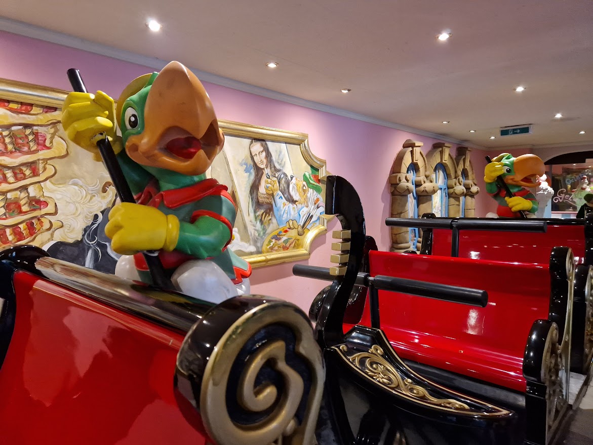 Better than any of the coasters in the park, in my opinion, are the park’s two star dark rides: Piraten in Batavia and Madame Freudenreich’s Curiosities. Two of the newer rides in the park (Piraten opened in 2020, Madame Freudenreich’s Curiosities in 2018) these are the attractions that give me hope Europa is moving towards the sort of park I could really, deeply fall in love with. For almost exclusively within these attractions, we are greeted with whimsy. There are things here that are a more than a little bit silly or a little cute! Things designed just to make us smile. And that’s why I love them to pieces.