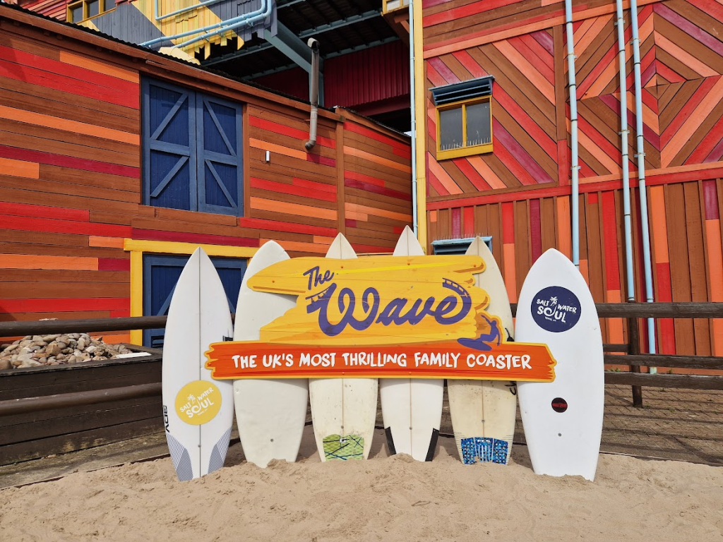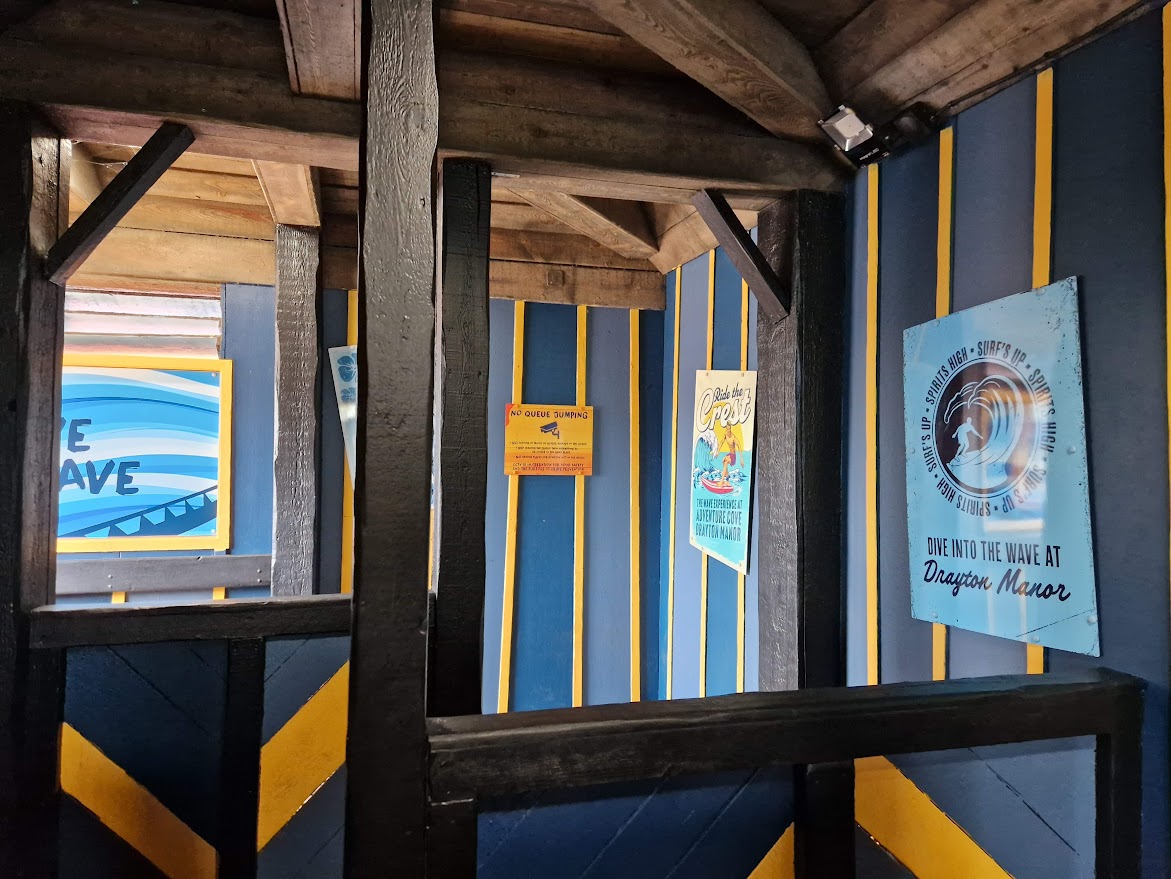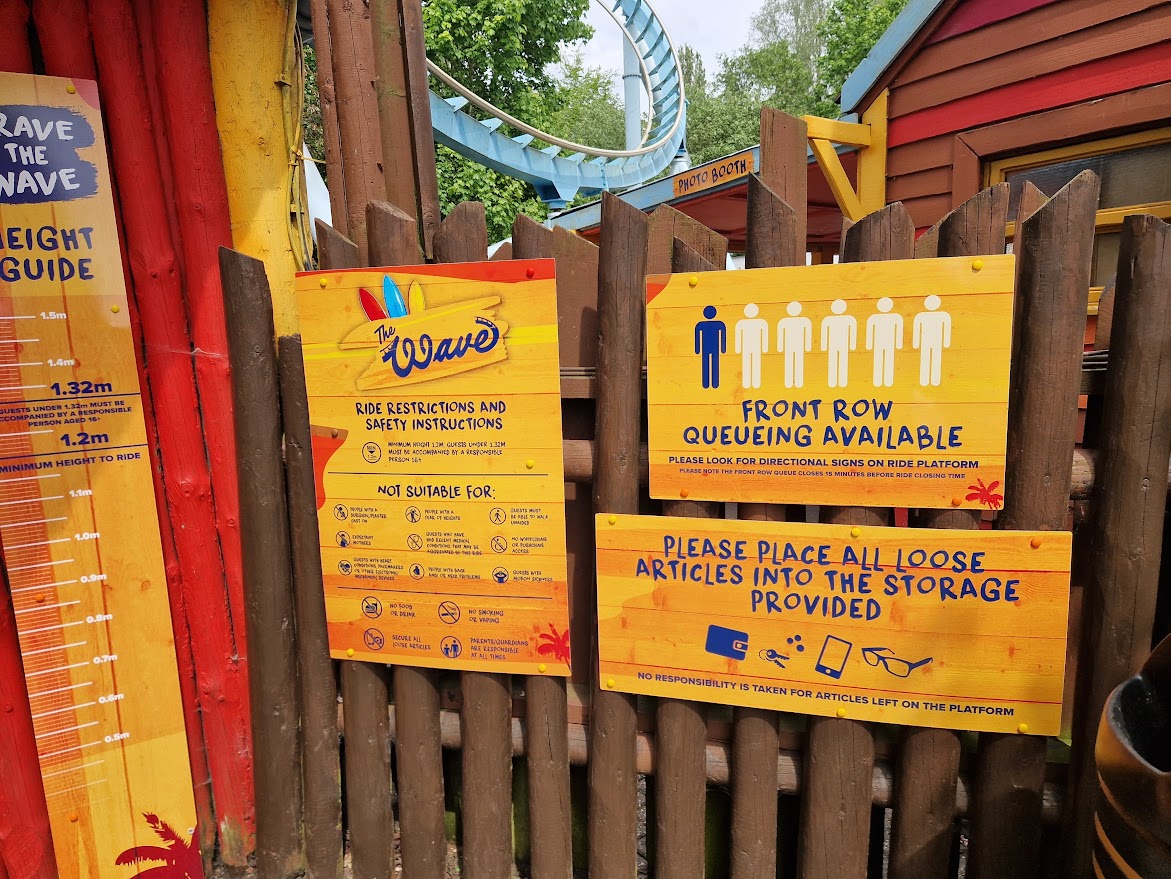 My favourite signage for the ride was the one directly adjacent to the ride’s entrance, displayed across a backdrop of surfboards, the declaration that this is ‘The UK’s most thrilling family coaster’ looks great! I really appreciate the effort of adding sand alongside this, too – I hope it survives!