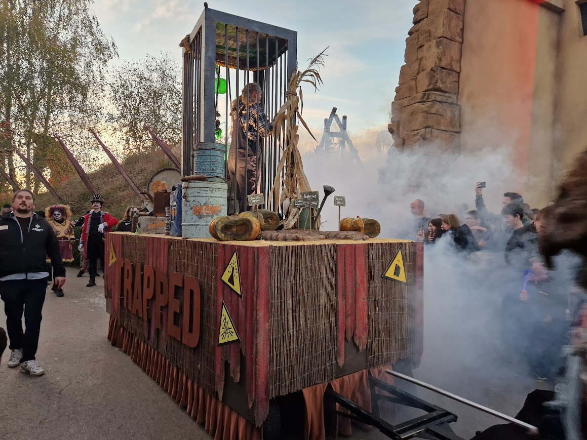 Parades are one of those things that I can’t help but feel like every park of a certain size should have. Yes, showcase your characters, your lands, your rides! Let’s celebrate your amazing park! Unless I’m mistaken, Toverland does not ordinarily offer a parade during routine operations, with this Halloween parade being the only one offered year-round. Which is perhaps why the crowd were, shall we say, a little ill-informed as to the parade’s contents. To be clear, this parade is listed as part of the offering for the scare event ‘Halloween Nights’, not the family-friendly ‘Halloween Days’. However, it marks the turning point in the park, with the former beginning as soon as the parade concludes. For that reason, as is common amongst parade crowds, the entire front of the crowd was made up of kids pushed to the front by their parents, which was all well and good… until the enormous chainsaw-bearing rats arrived. This parade is not for the faint-hearted, acting as a preview of all the evening’s scare zones. The actors in every group took time to charge into the crowd, eliciting plenty of screams – and tears – from those assembled!