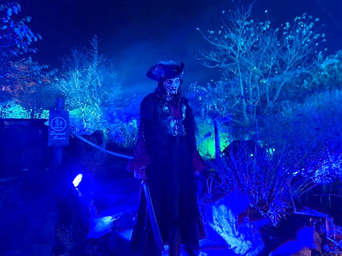 Toverland’s Halloween Nights is highly regarded for its stunning scare zones, filled with creative lighting and beautiful costumes, and of these, my personal favourite was Shadows of the Sea! Located near the park’s rapids, this zone makes use of several permanent water features to create a Davy Jones-esque scare zone filled with aquatic villains and haunting pirates!